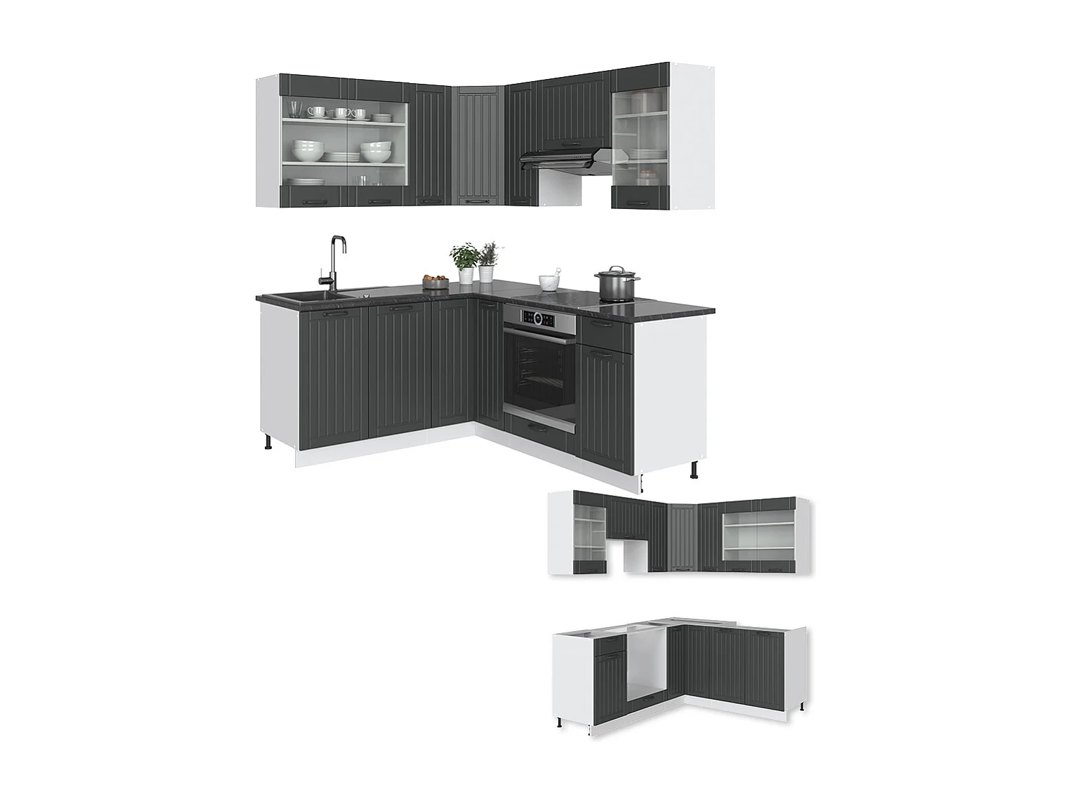 Eckküche anthrazit landhaus/weiß 190x60x81.6 fame-line