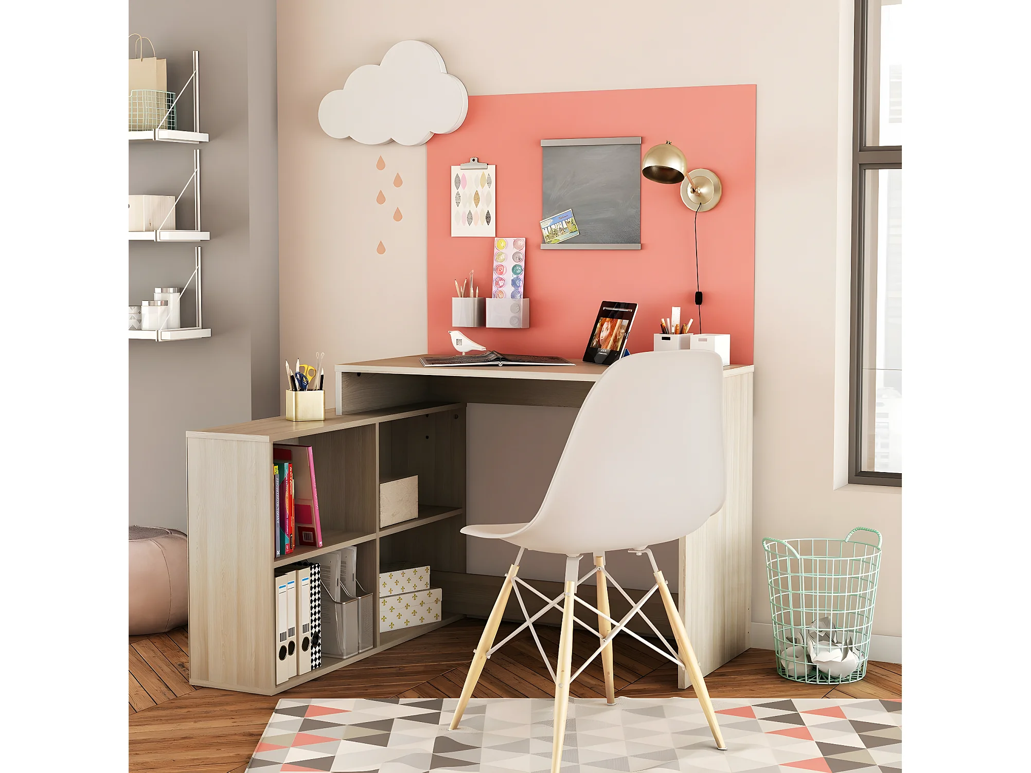 Eckschreibtisch mit umkehrbarer Ausrichtung, 4 Fächer, L111,9 cm - Corner