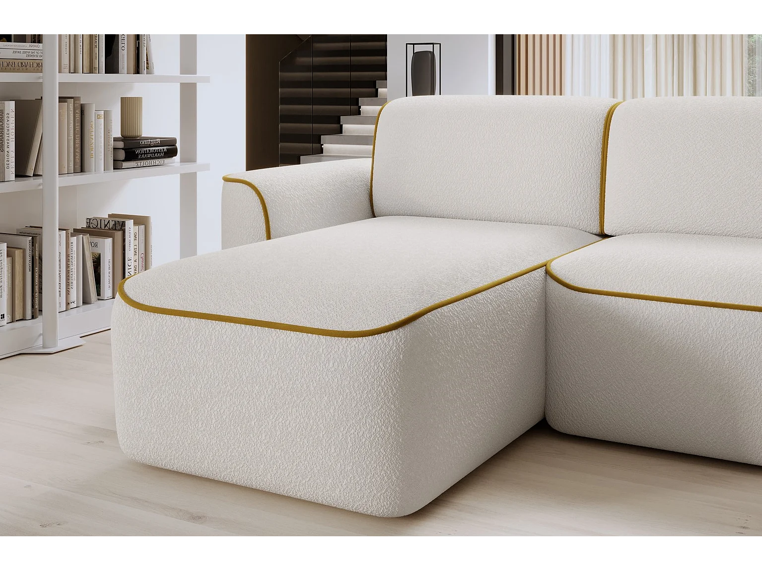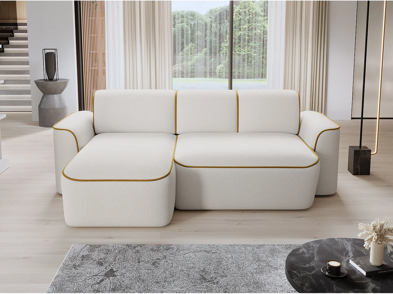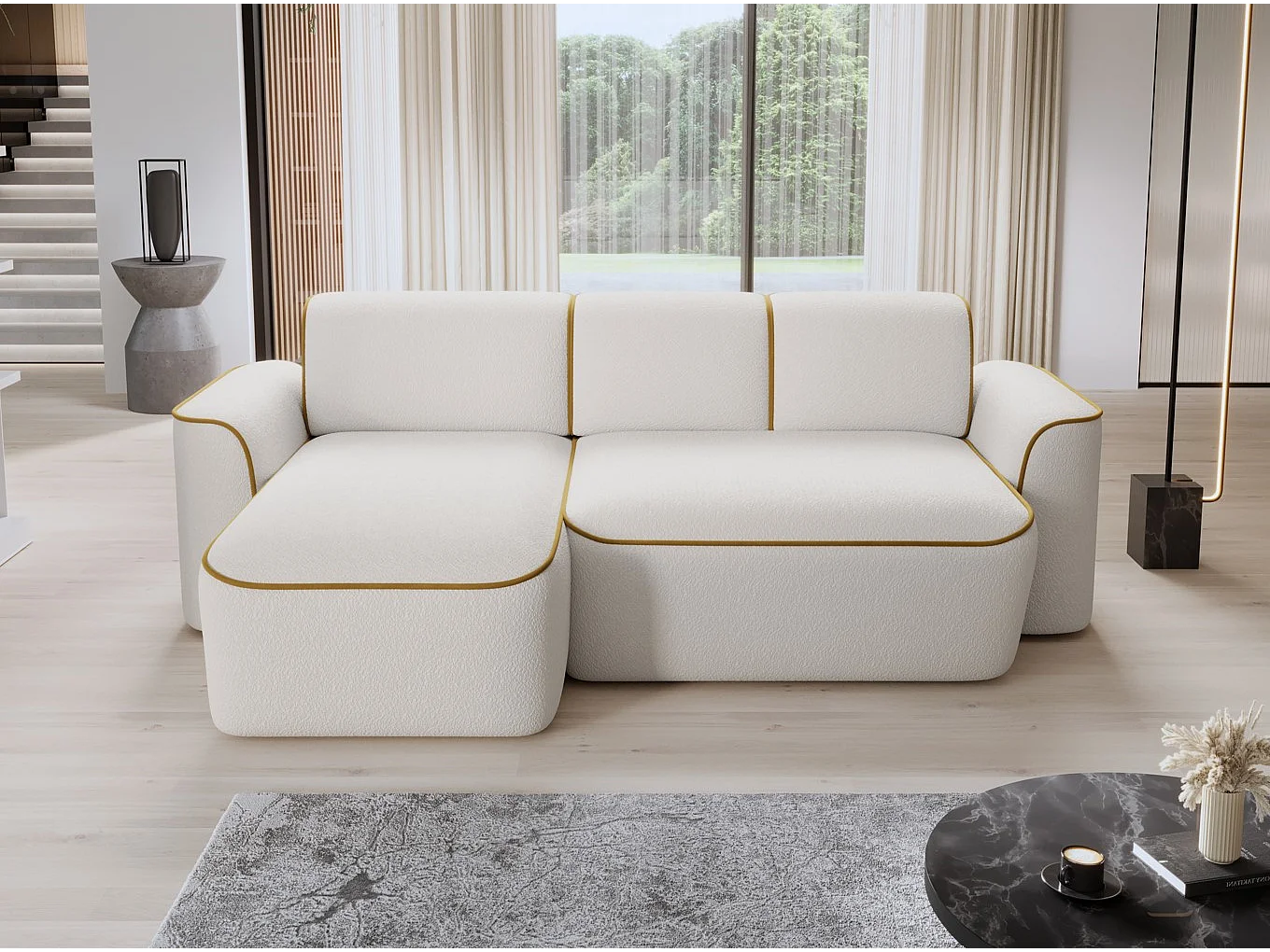 Ecksofa Alexa L/Stoff-Beige&Gold