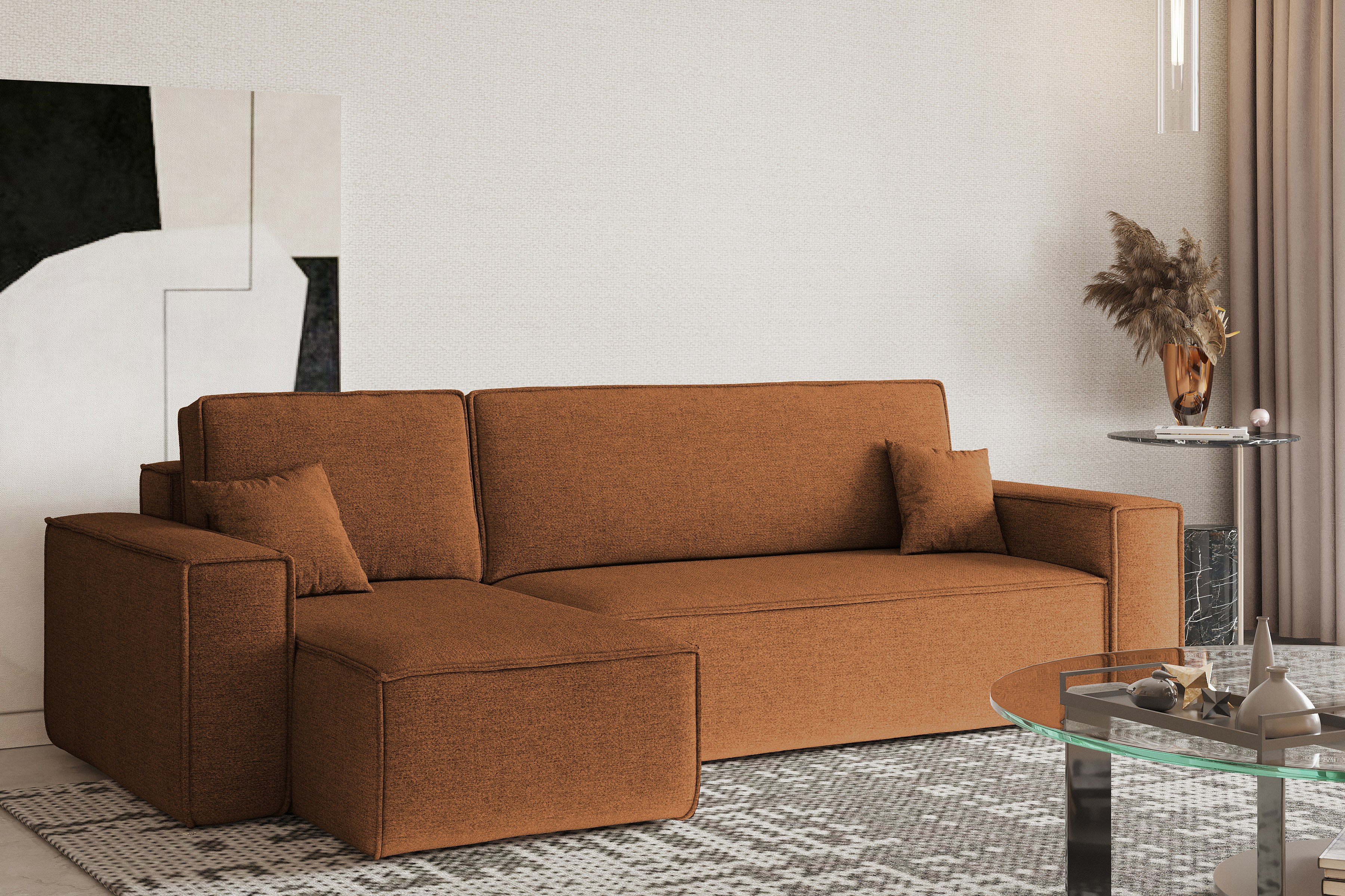 Ecksofa, Best L-Form mit Schlaffunktion und Bettkasten, Stoff Neve, Kupfer, Links