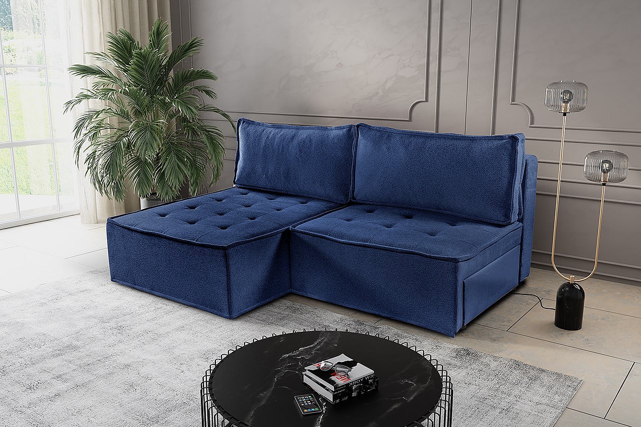 Ecksofa Bohoo Mini mit Schlaffunktion, Stoff Raven, Blau, Links