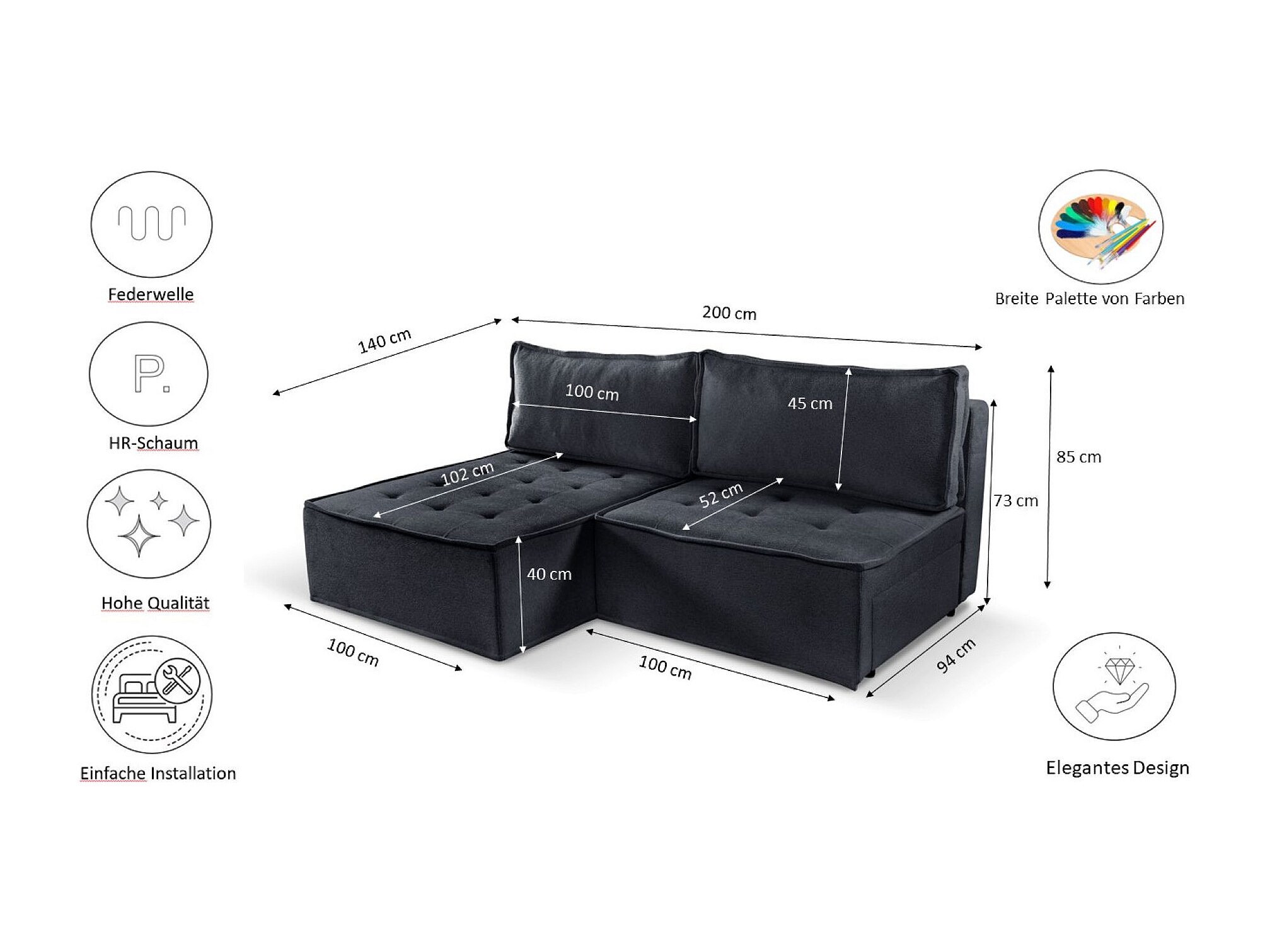 Ecksofa Bohoo Mini mit Schlaffunktion, Stoff Raven, Graphit, Links