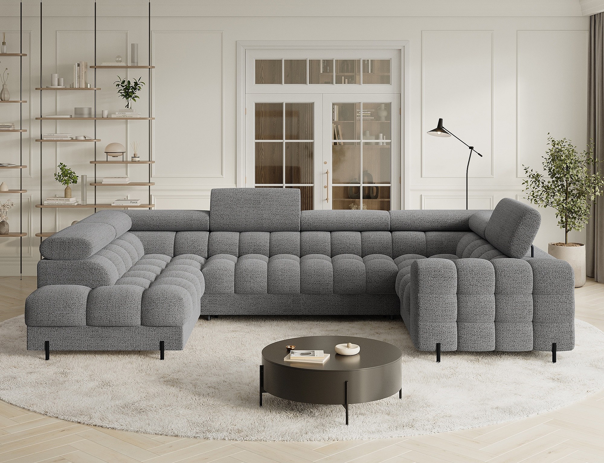 Ecksofa Brasilia UL/Stoffbezug/Bett&Bettbox/Beige-Bouclé