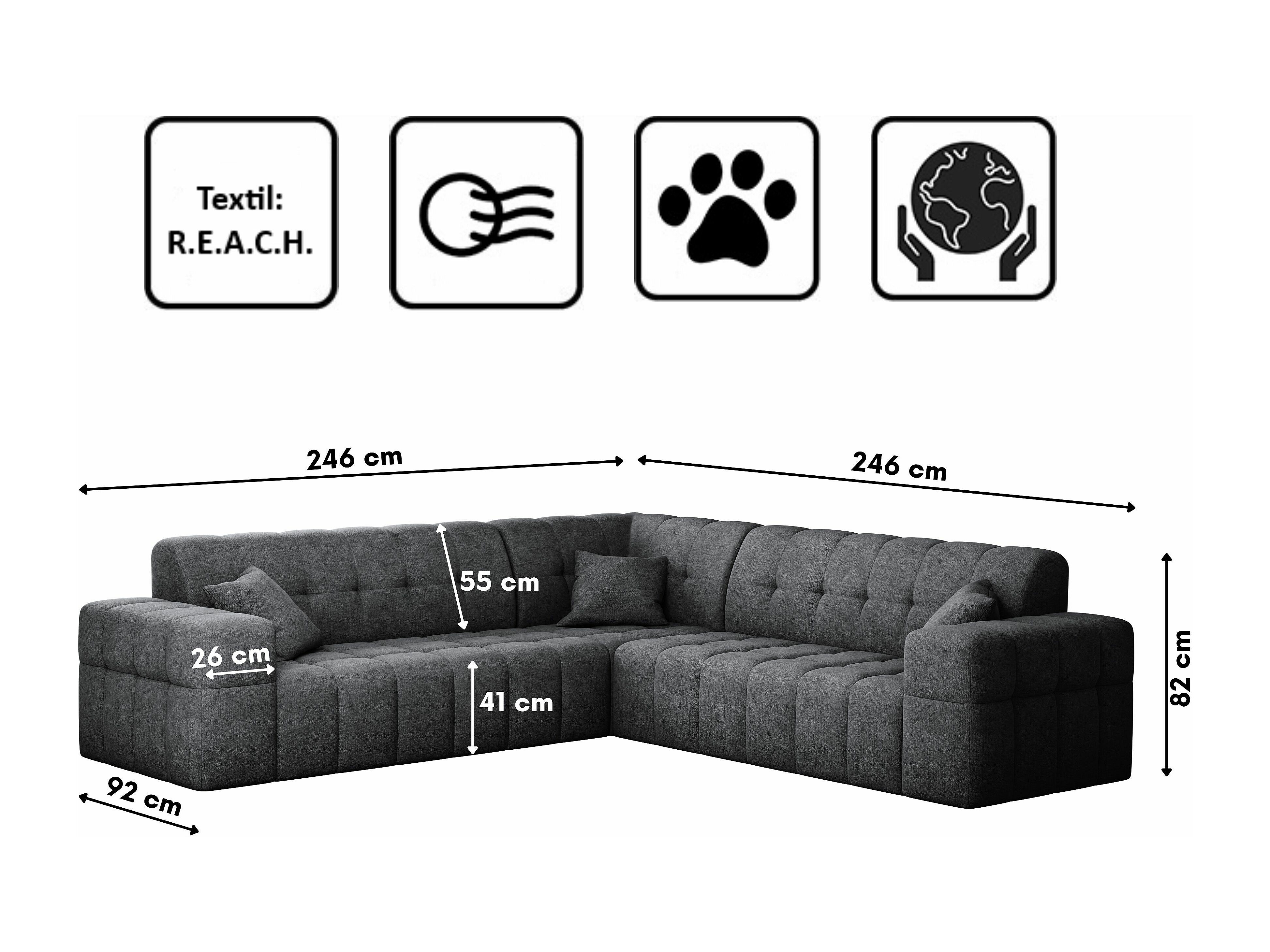 Ecksofa Corner Eckouch Wohnzimmer NIMES stilvol Stoff Perfect Harmony Dunkelgrau
