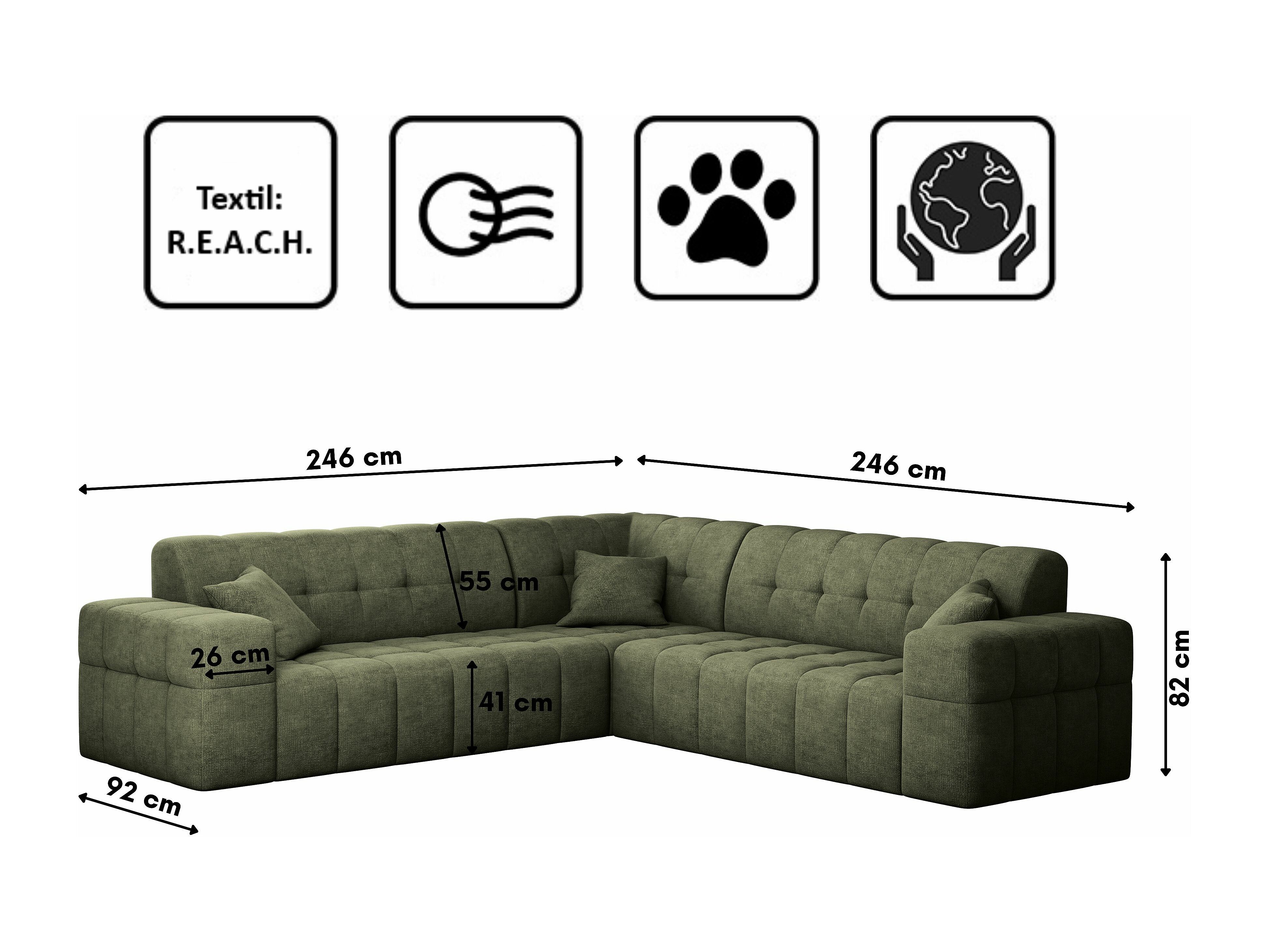 Ecksofa Corner Eckouch Wohnzimmer NIMES stilvol Stoff Perfect Harmony Grün
