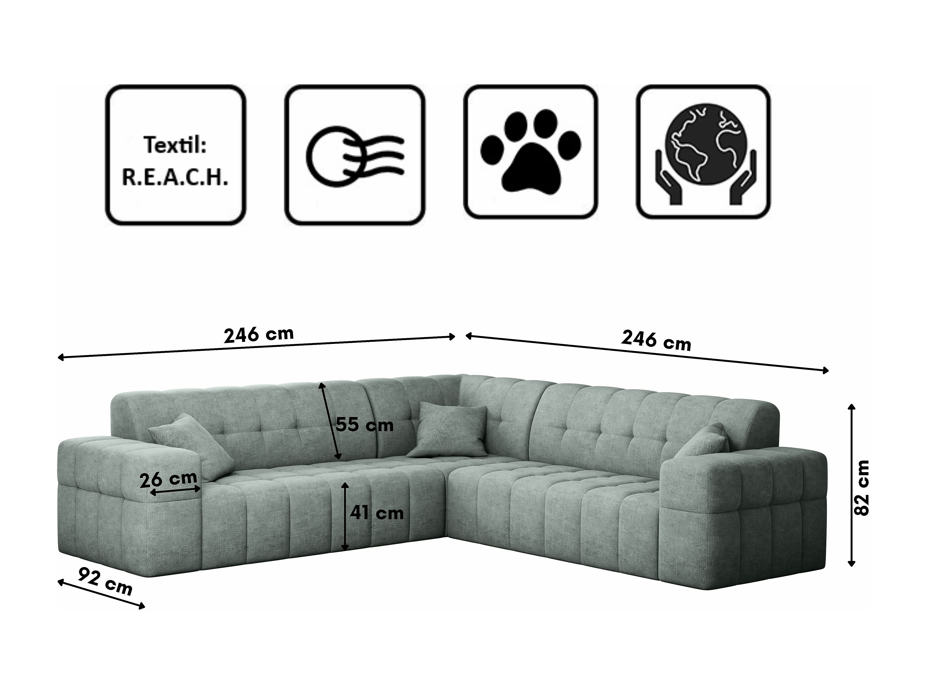 Ecksofa Corner Eckouch Wohnzimmer NIMES stilvol Stoff Perfect Harmony Mintz