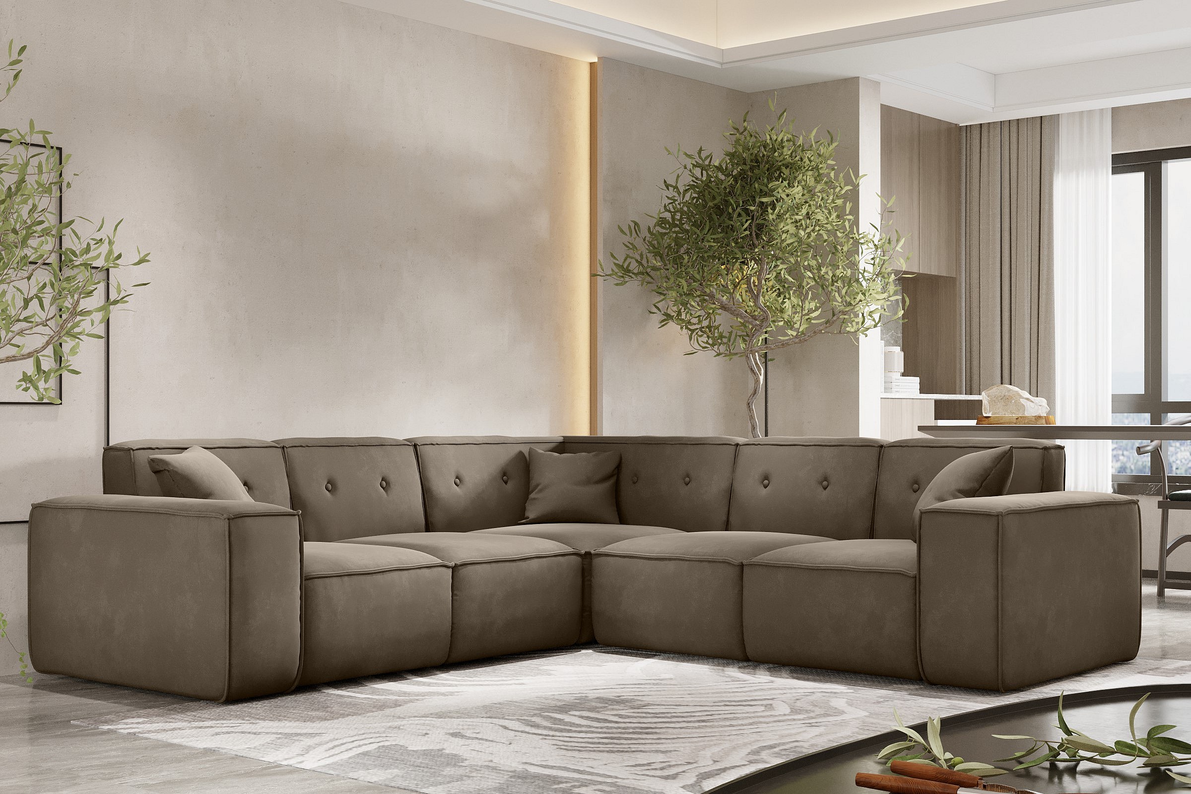 Ecksofa Corner PULA, Stoff Opera Velvet, Braun