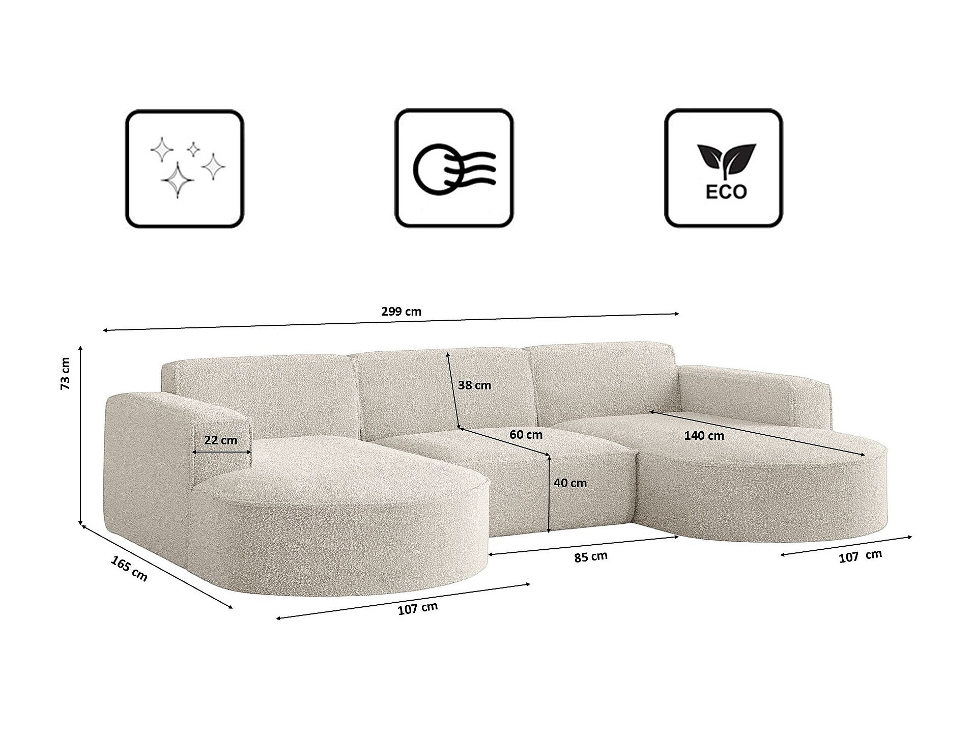 Ecksofa Designer, Sofa U Form MODENA Stoff Loop Perle