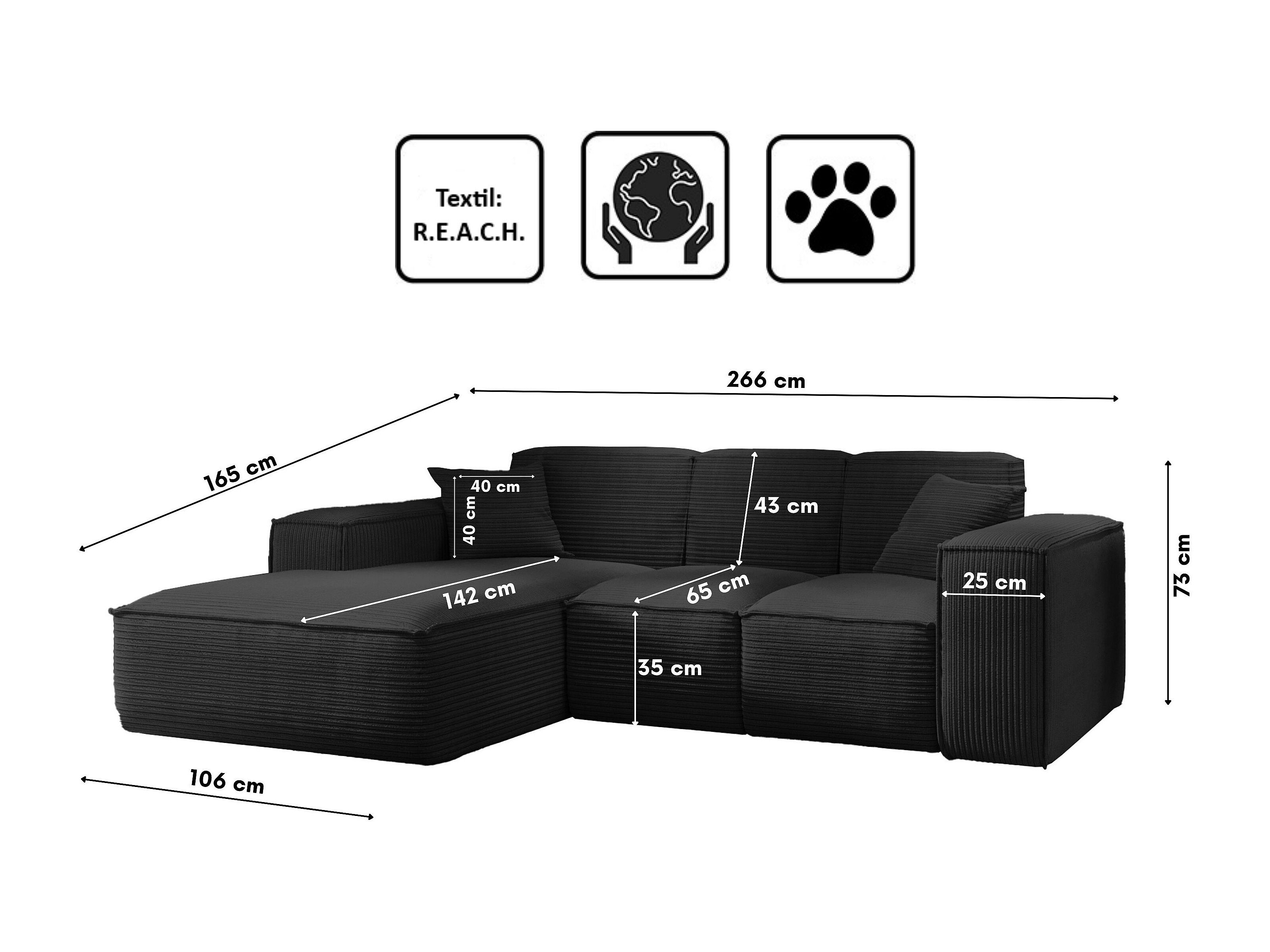 Ecksofa, Eckcouch L form, Wohnzimmer, Couch SIENA stoff Poso, Schwarz, Links