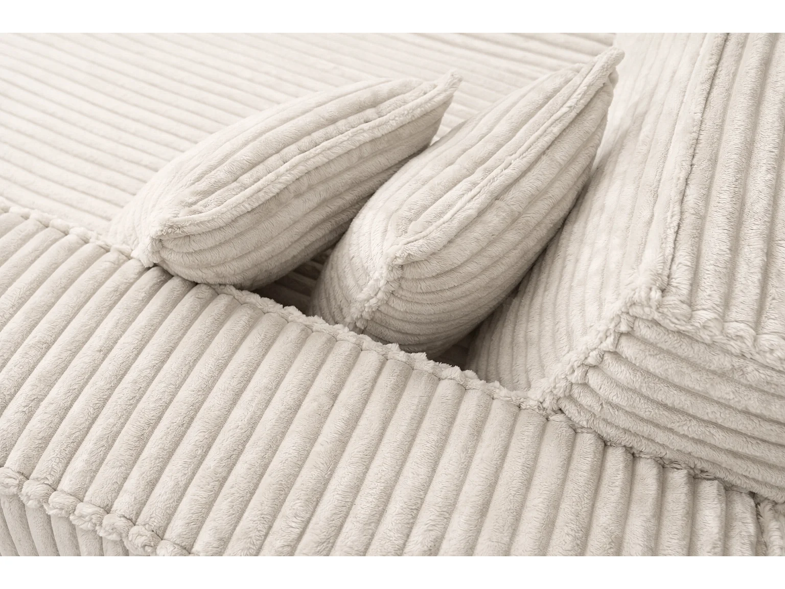 Ecksofa L-Form, Cordstoff Velo, Ecru, Rechts, Modena Studio