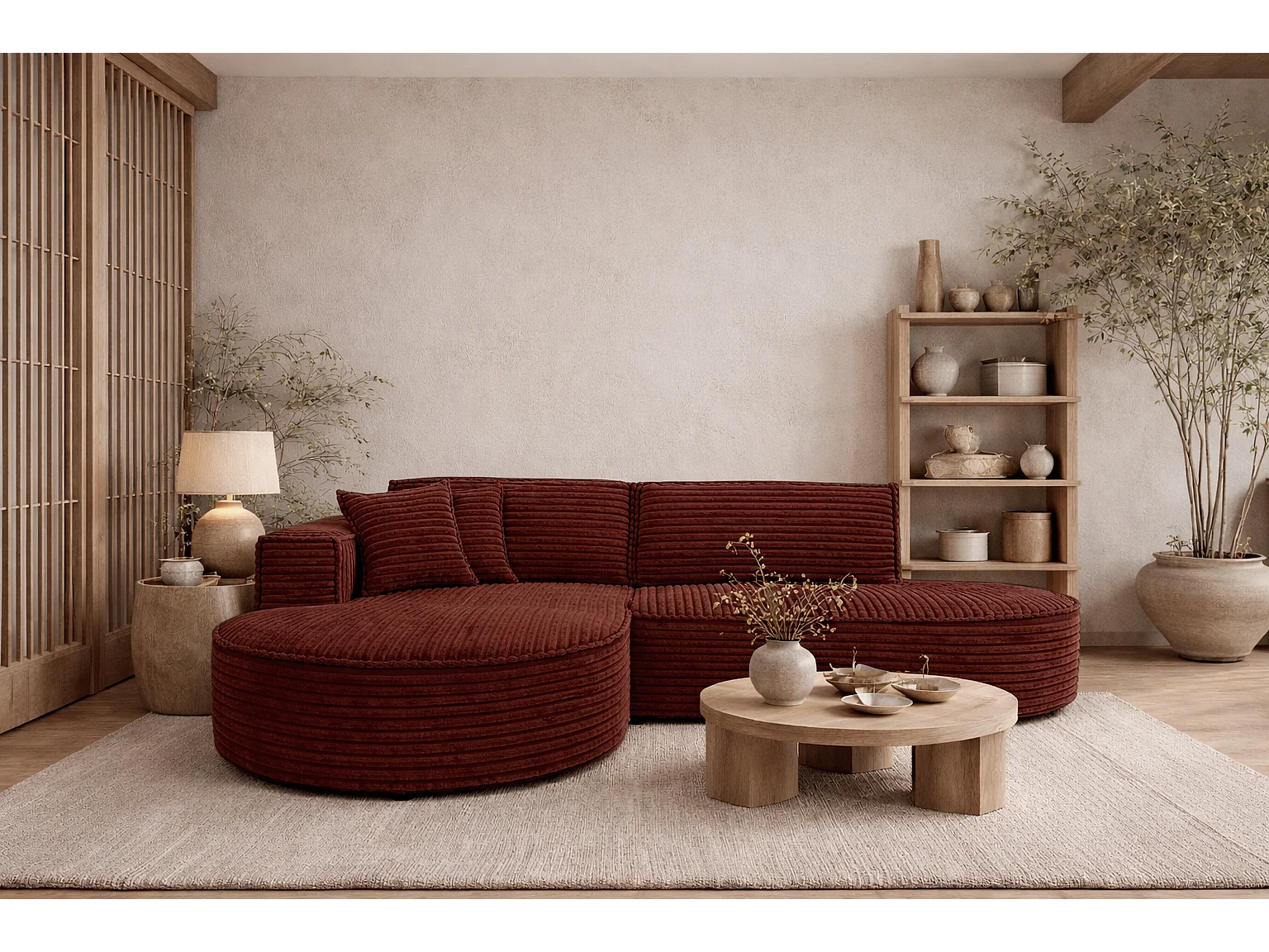 Ecksofa L-Form, Cordstoff Velo, Kupfer, Links, Modena Studio