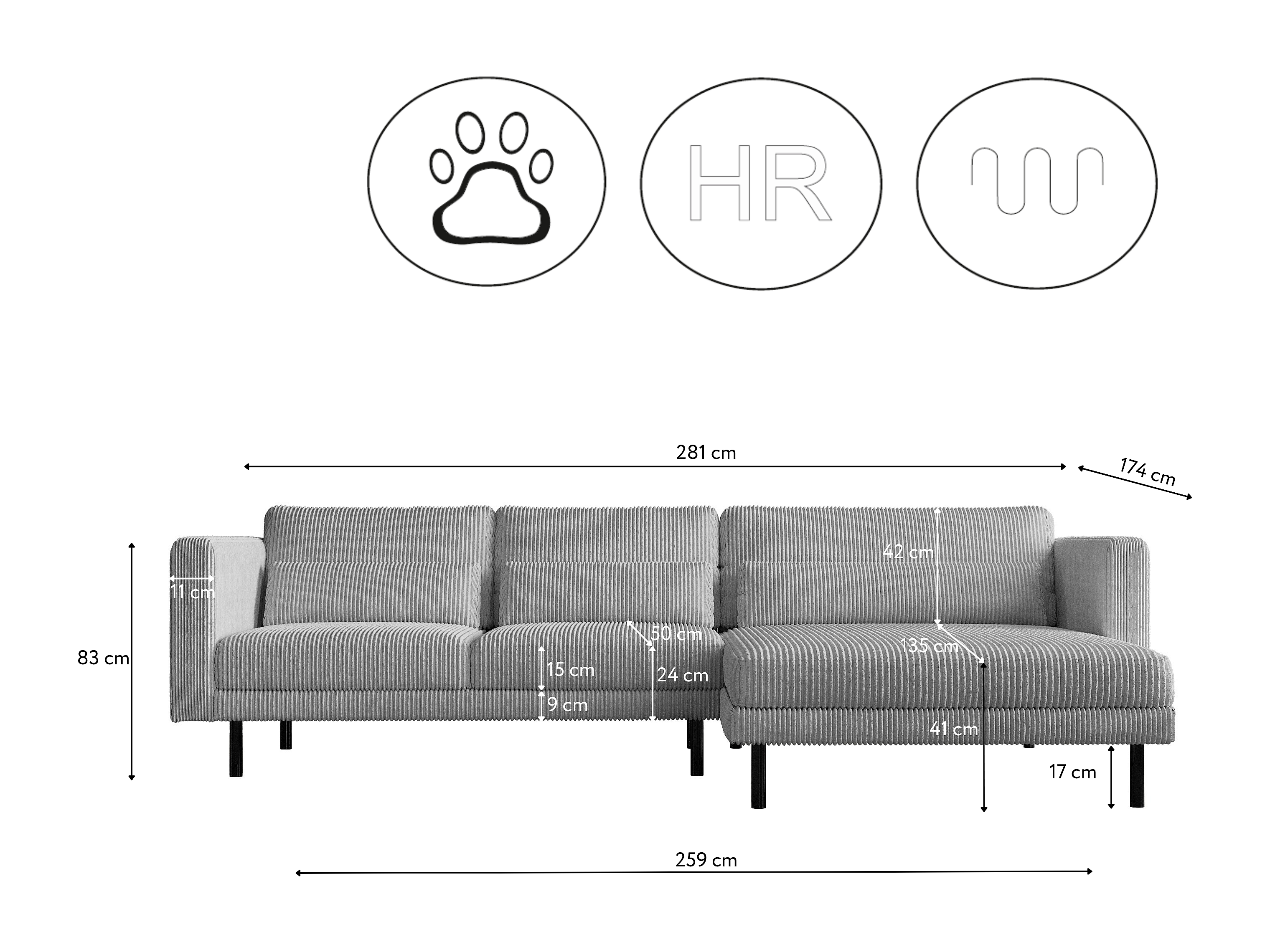 Ecksofa L-form Dani Stoff Poso Silber Rechts
