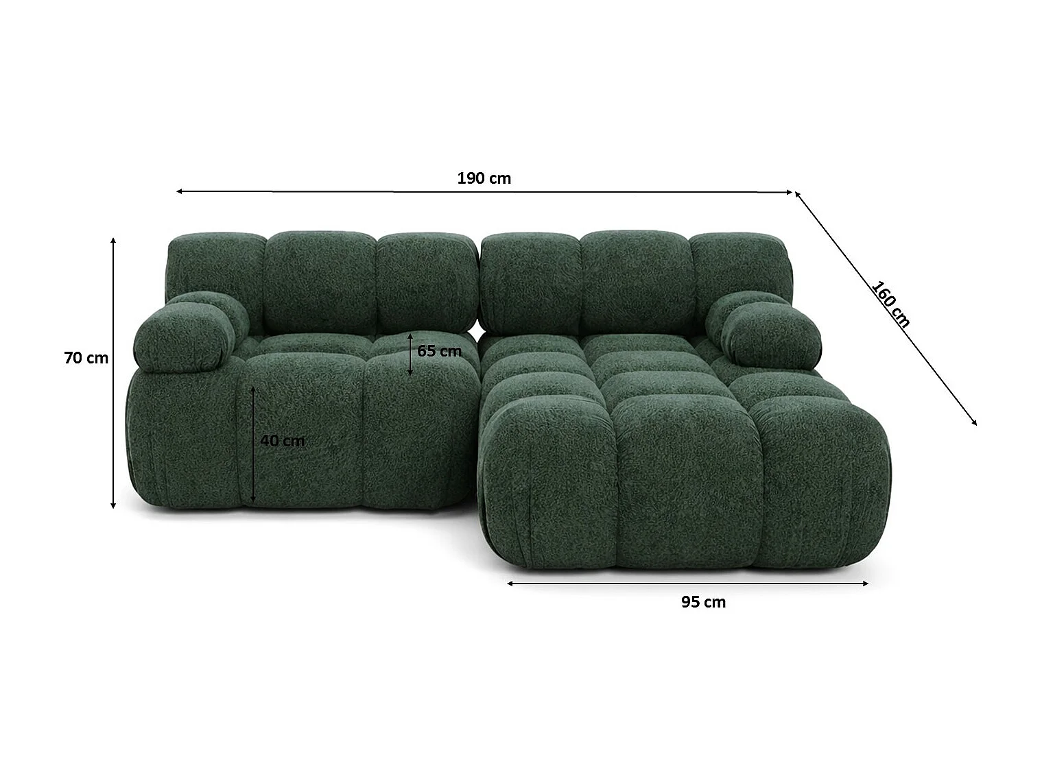 Ecksofa L-form Mini modular, Bouclé-Stoff Abriamo, Dunkelgrün, Rechts, Selia