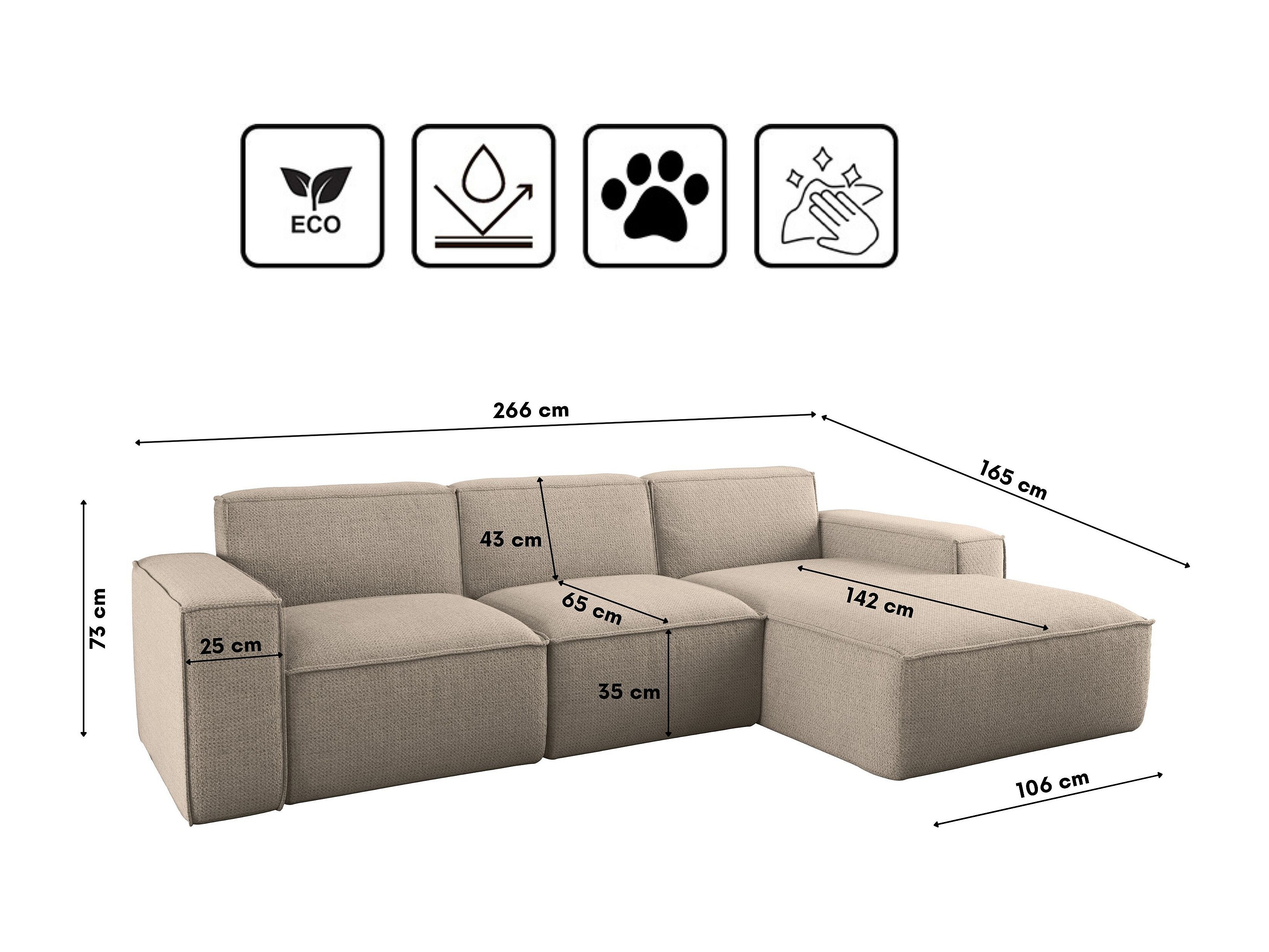 Ecksofa L-Form Siena Stoff Artico Beige Rechts