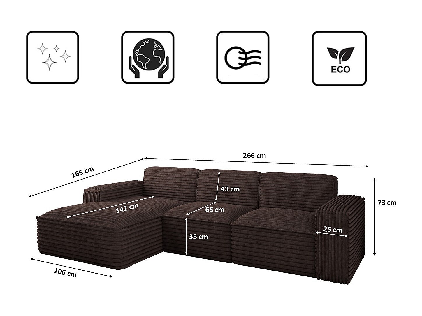 Ecksofa L-Form Siena Stoff Velo Braun Links