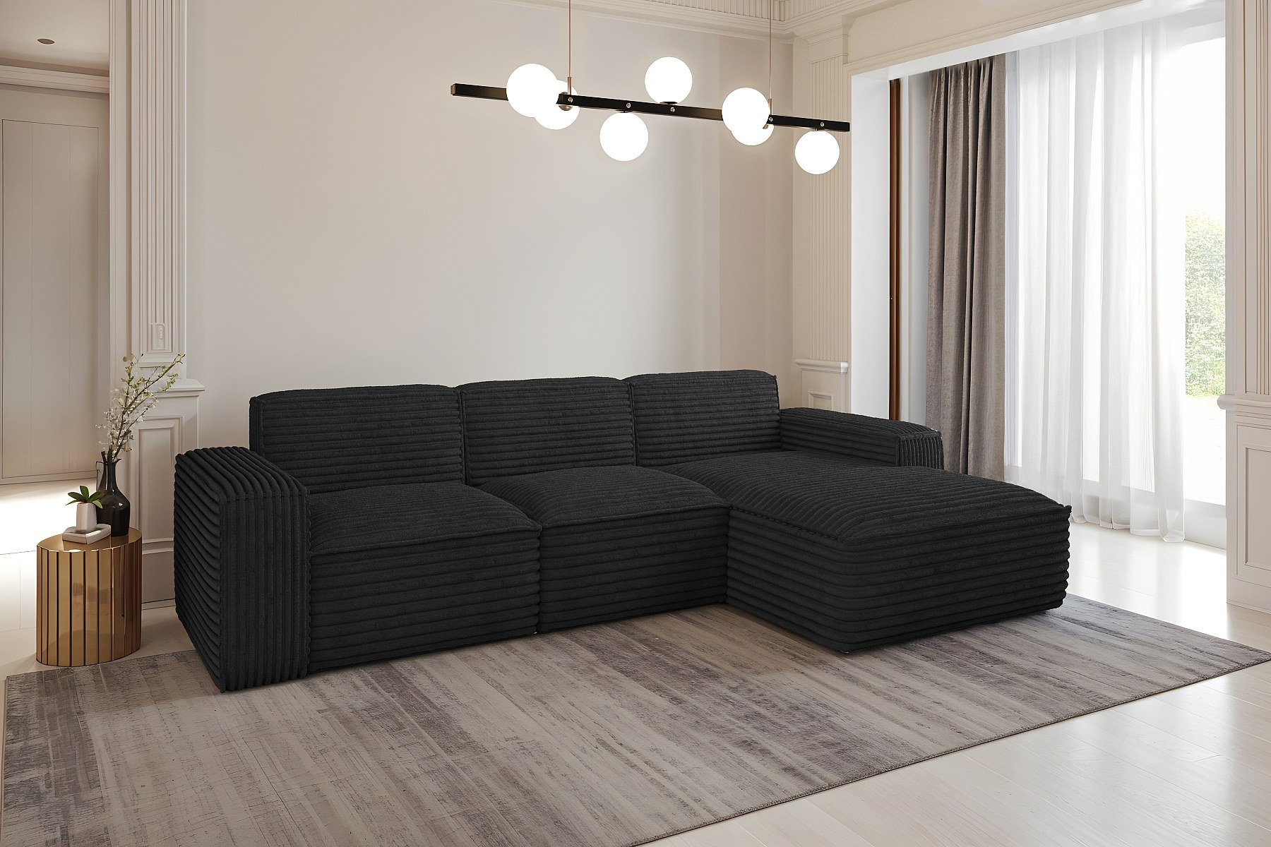 Ecksofa L-Form Siena Stoff Velo Schwarz Rechts