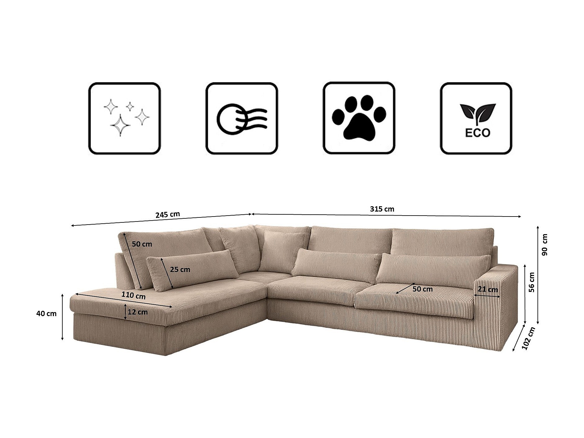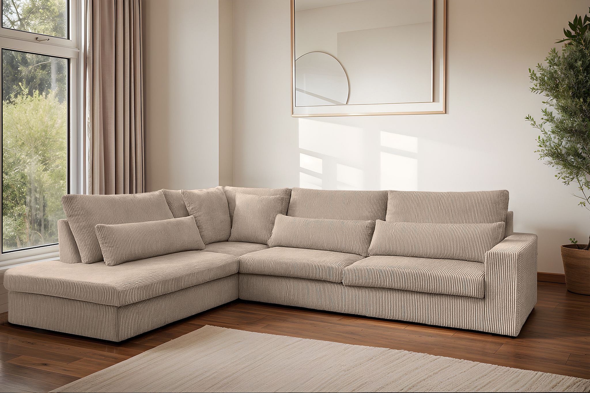 Ecksofa L-Form SVEN Stoff Poso Dunkelbeige Links