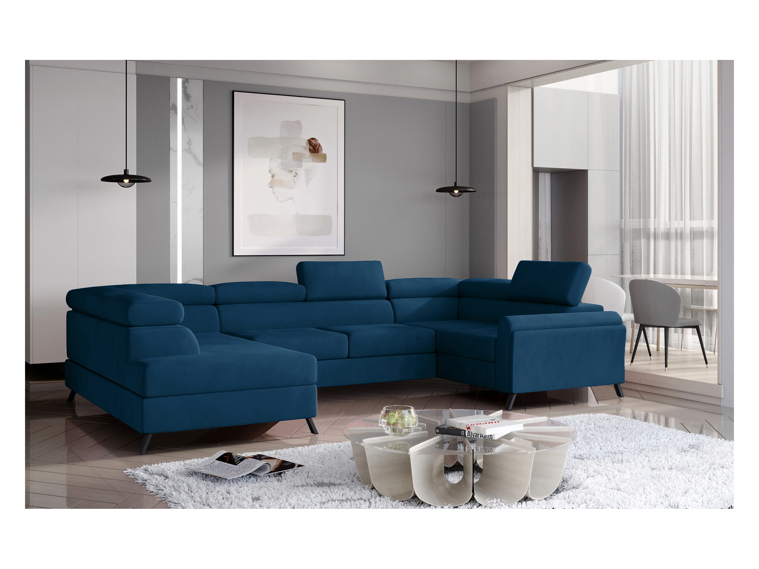 Ecksofa Lenzo UL/Stoff-Blau