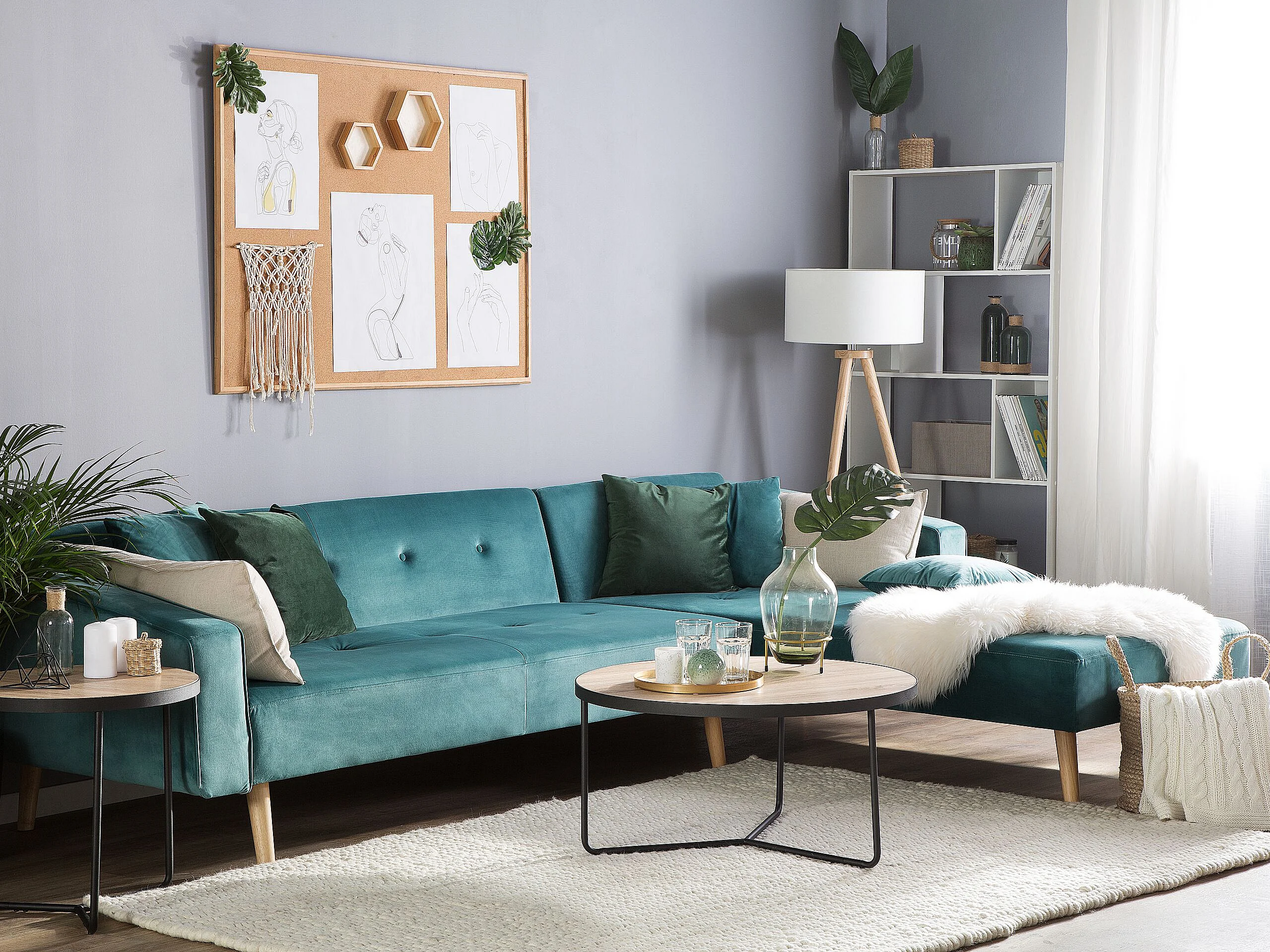Eckschlafsofa VADSO Samtstoff Smaragdgrün 4-Sitzer linksseitig