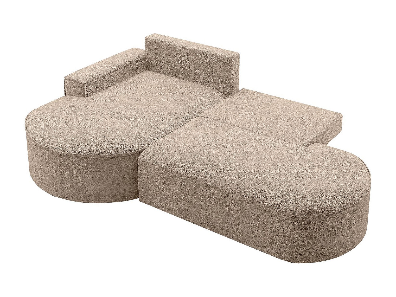Ecksofa mit Schlaffunktion und Bettkasten Modena Runden stoff Arena Dunkelbeige Links