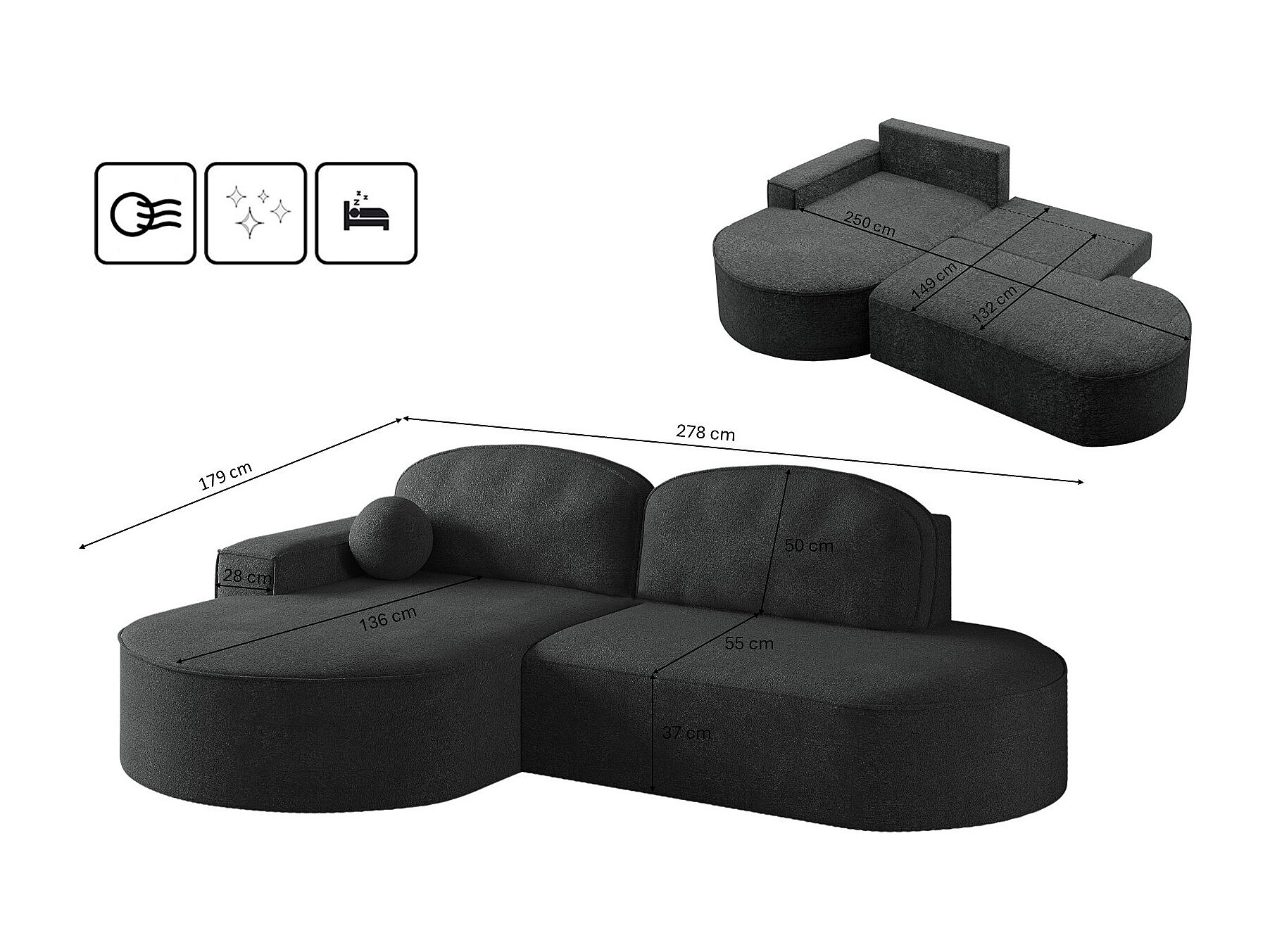 Ecksofa mit Schlaffunktion und Bettkasten Modena Runden stoff Arena Graphit Links