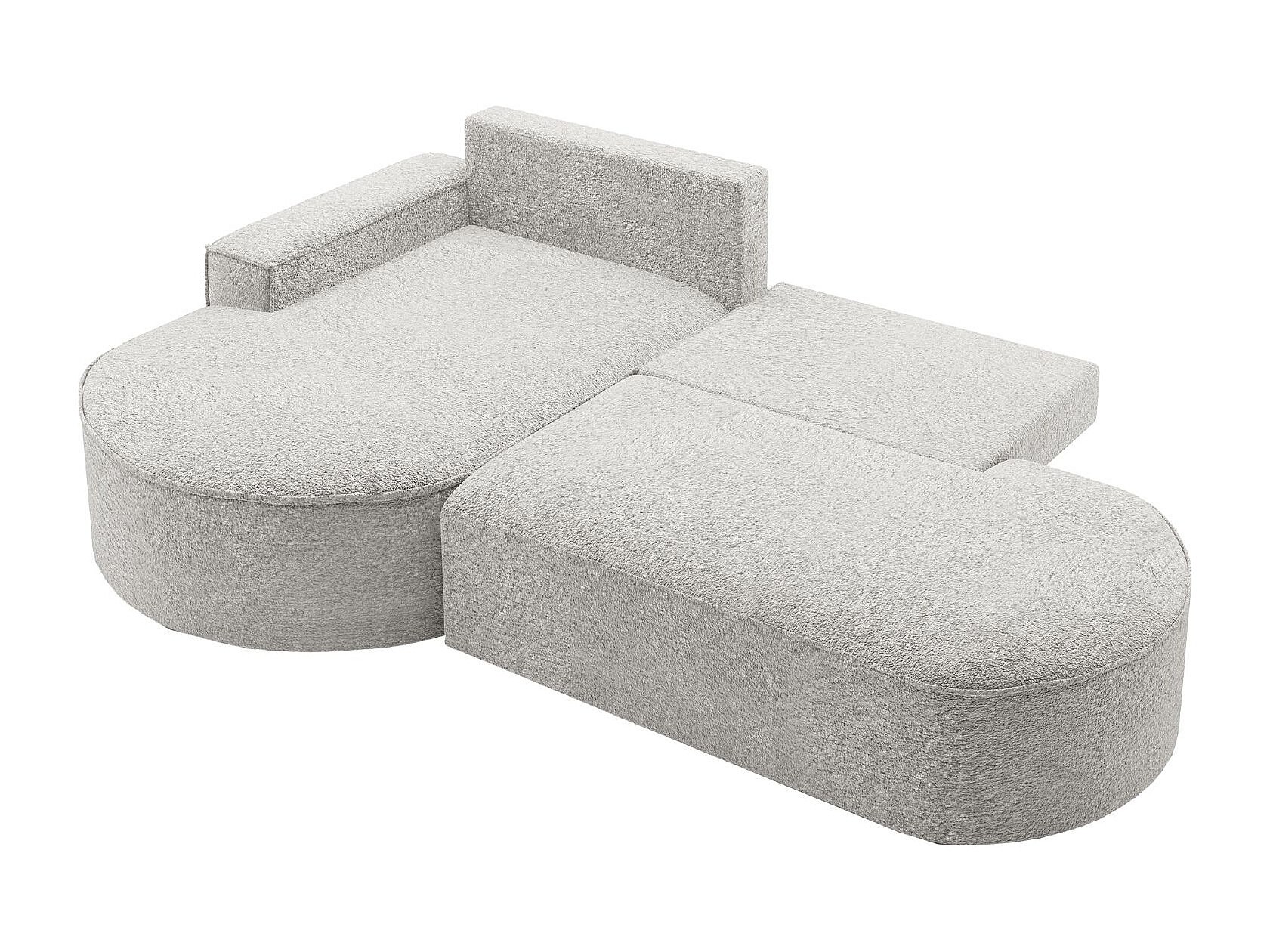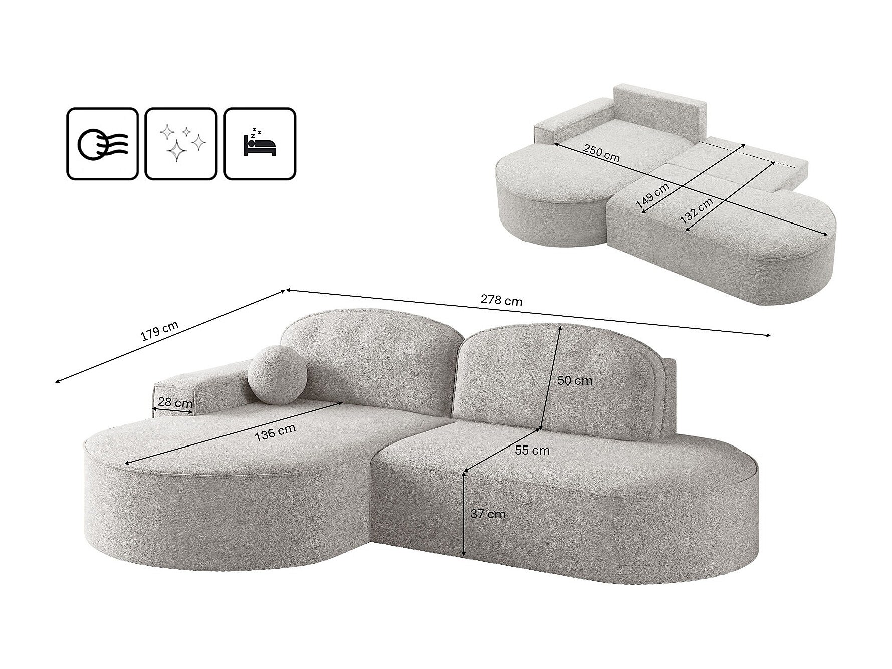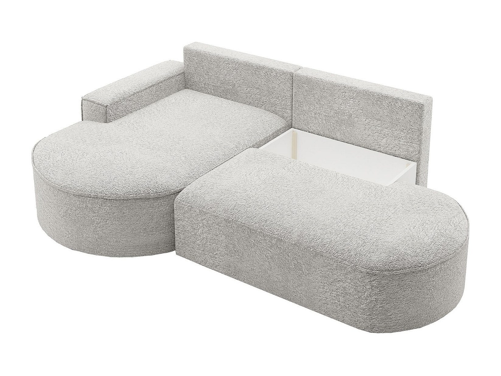 Ecksofa mit Schlaffunktion und Bettkasten Modena Runden stoff Arena Hellgrau Links