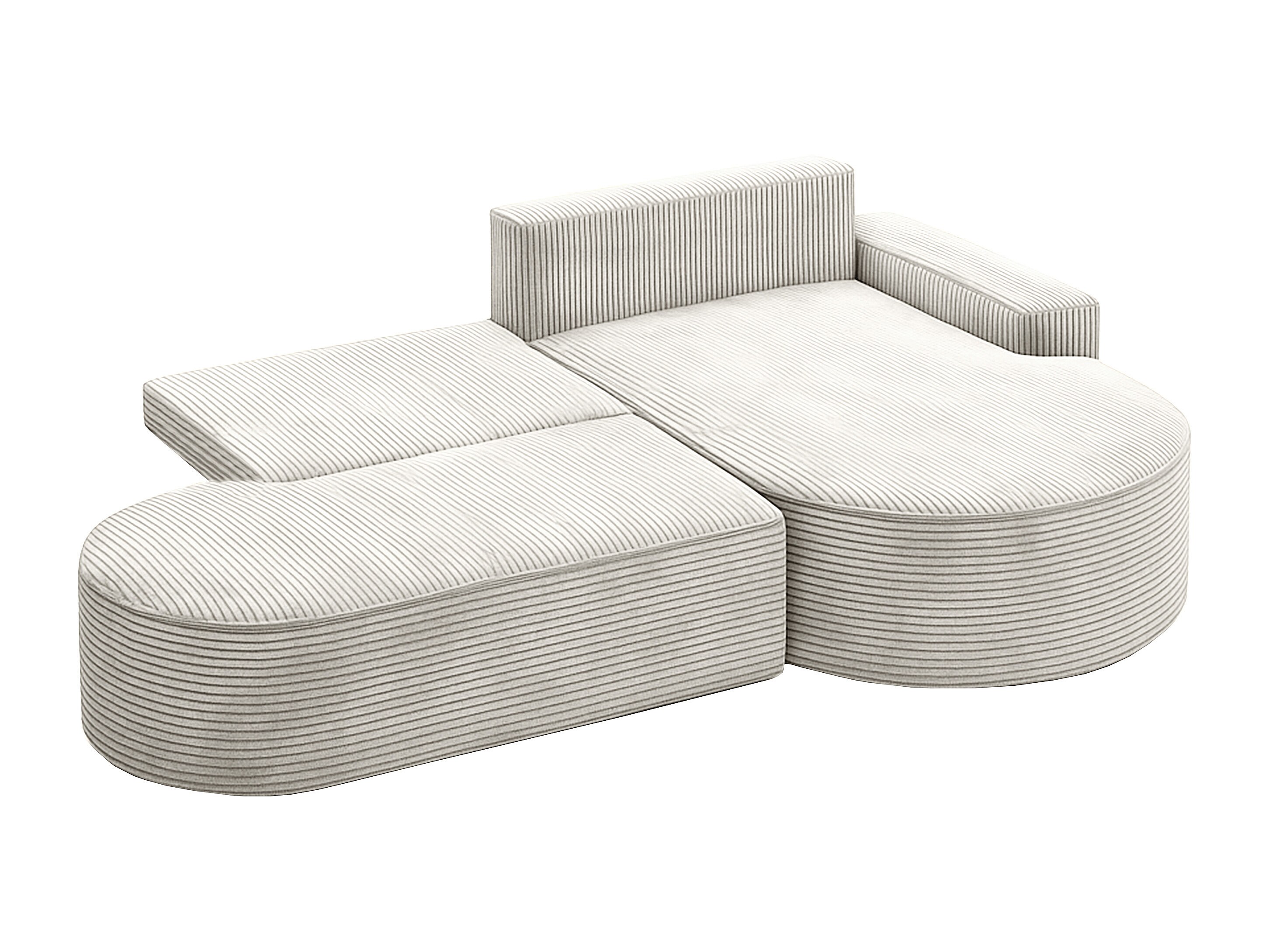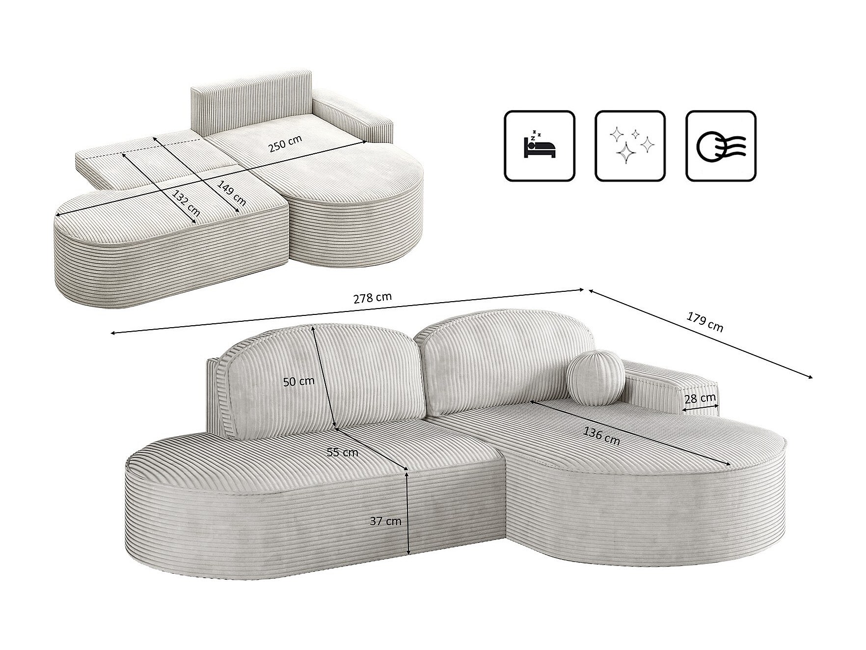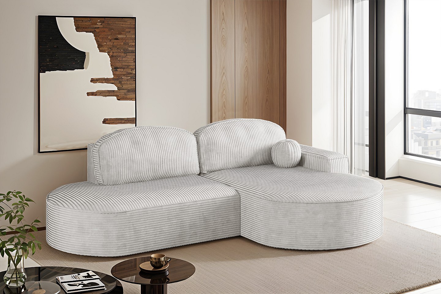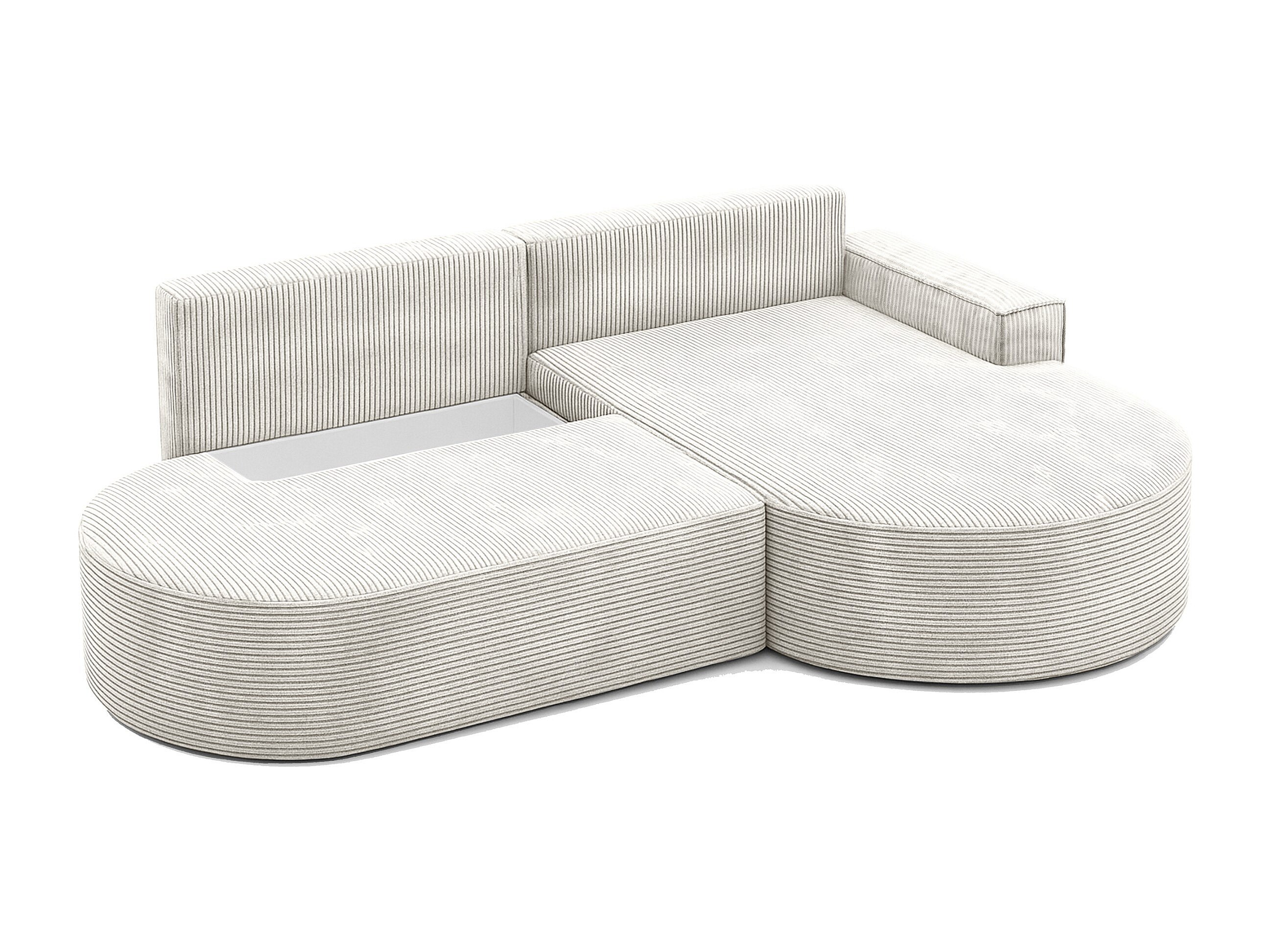 Ecksofa mit Schlaffunktion und Bettkasten Modena Runden stoff Poso Beige Rechts