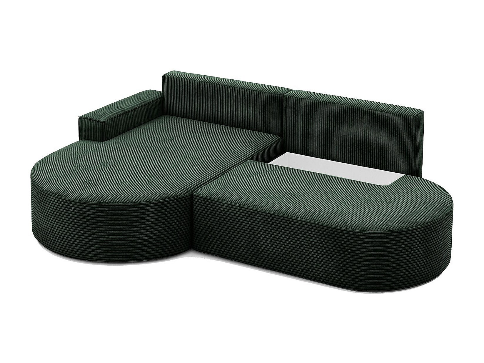 Ecksofa mit Schlaffunktion und Bettkasten Modena Runden stoff Poso Grün Links