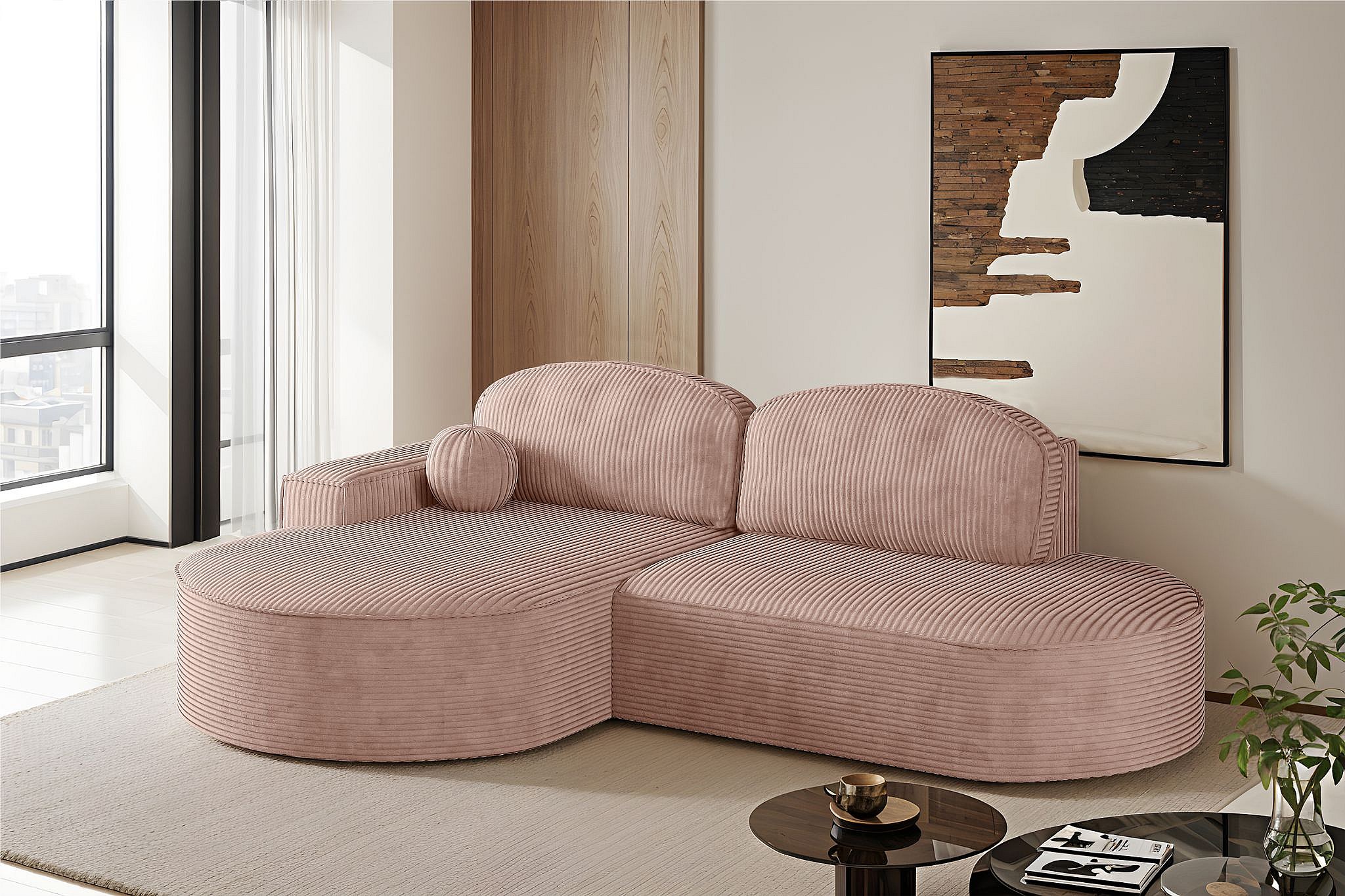 Ecksofa mit Schlaffunktion und Bettkasten Modena Runden stoff Poso Rosa Links