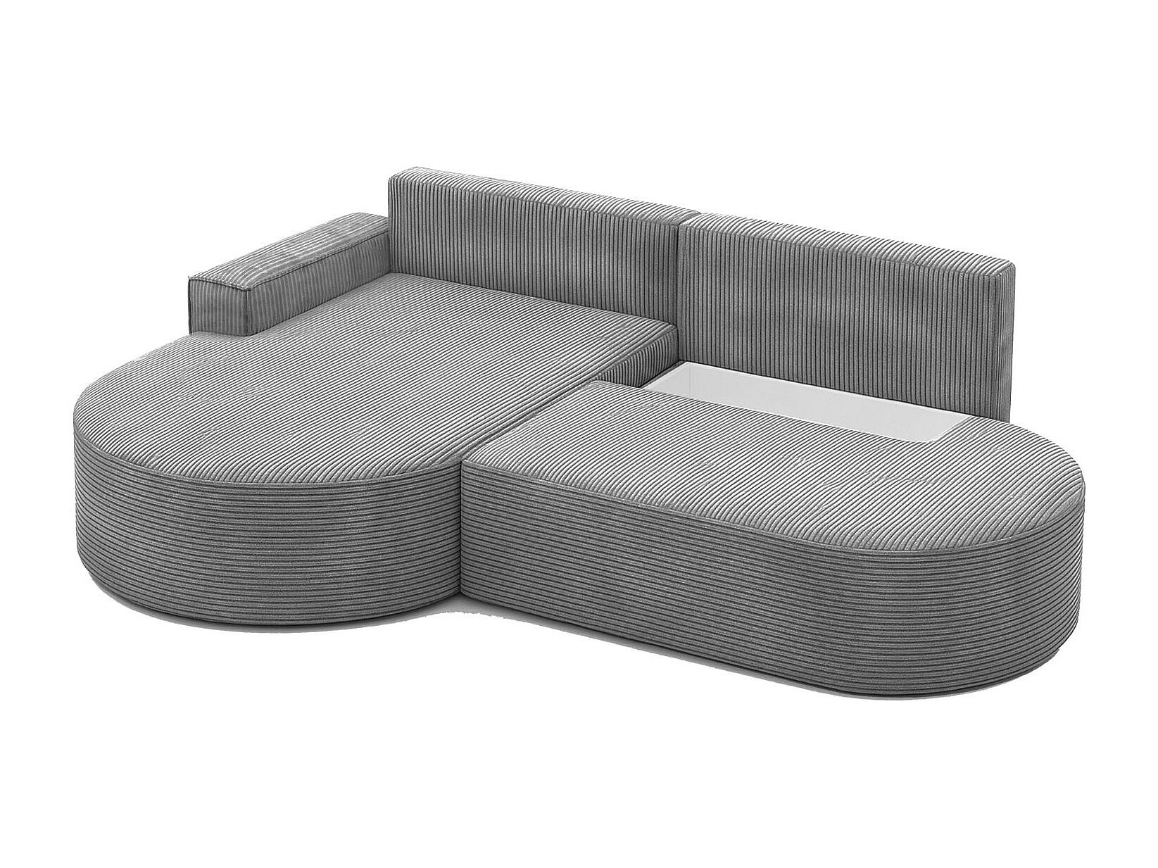 Ecksofa mit Schlaffunktion und Bettkasten Modena Runden stoff Poso Silber Links