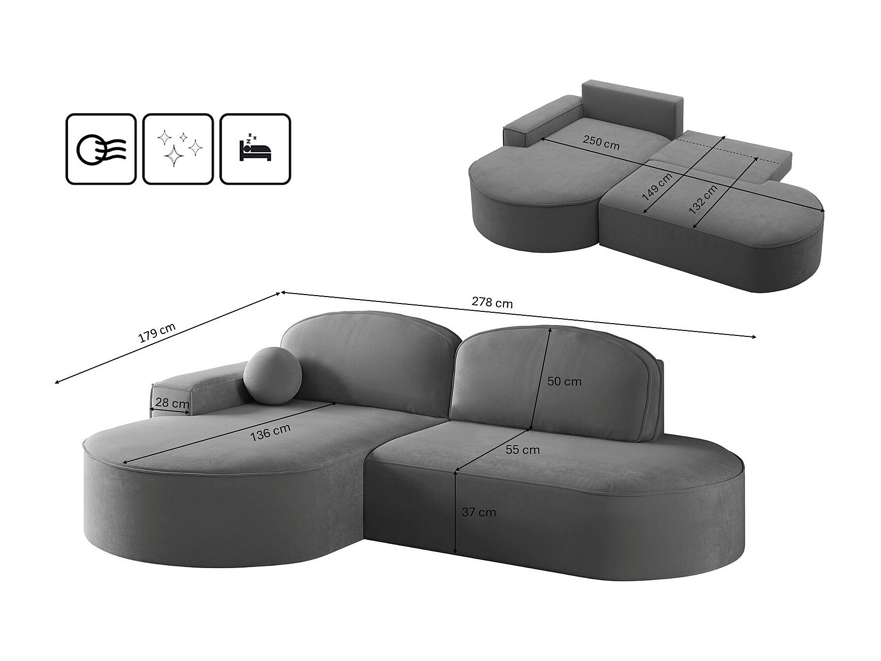 Ecksofa mit Schlaffunktion und Bettkasten Modena Runden stoff Salvador Anthrazit Links