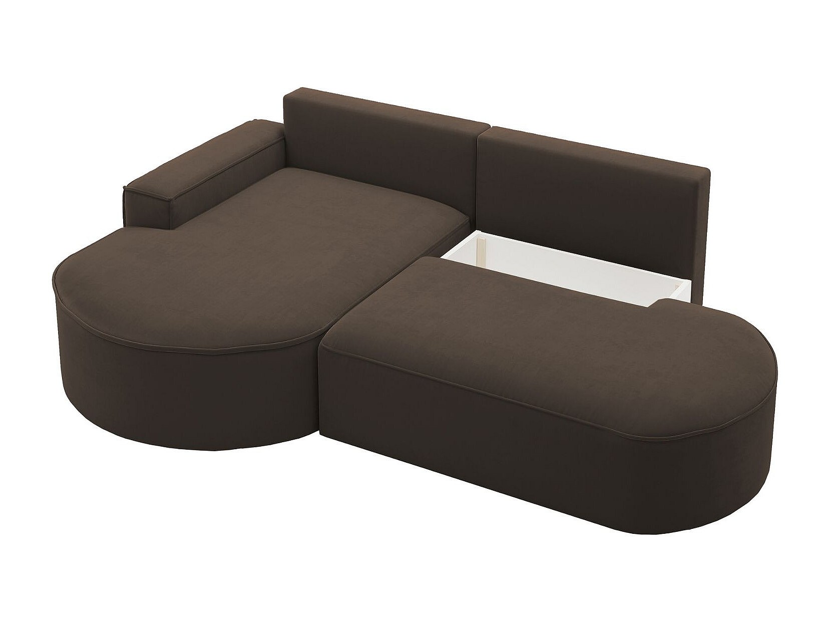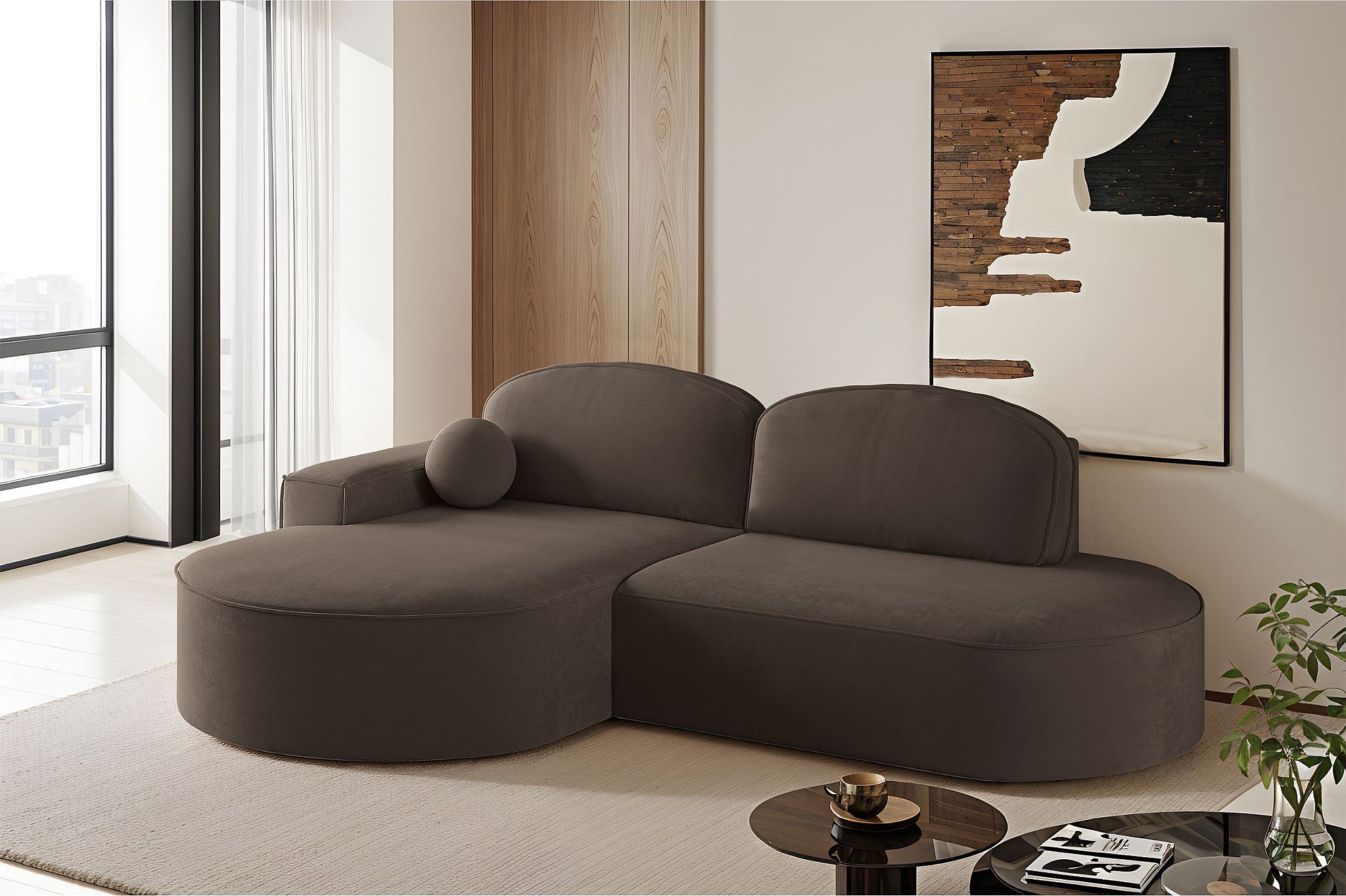 Ecksofa mit Schlaffunktion und Bettkasten Modena Runden stoff Salvador Dunkelbraun Links
