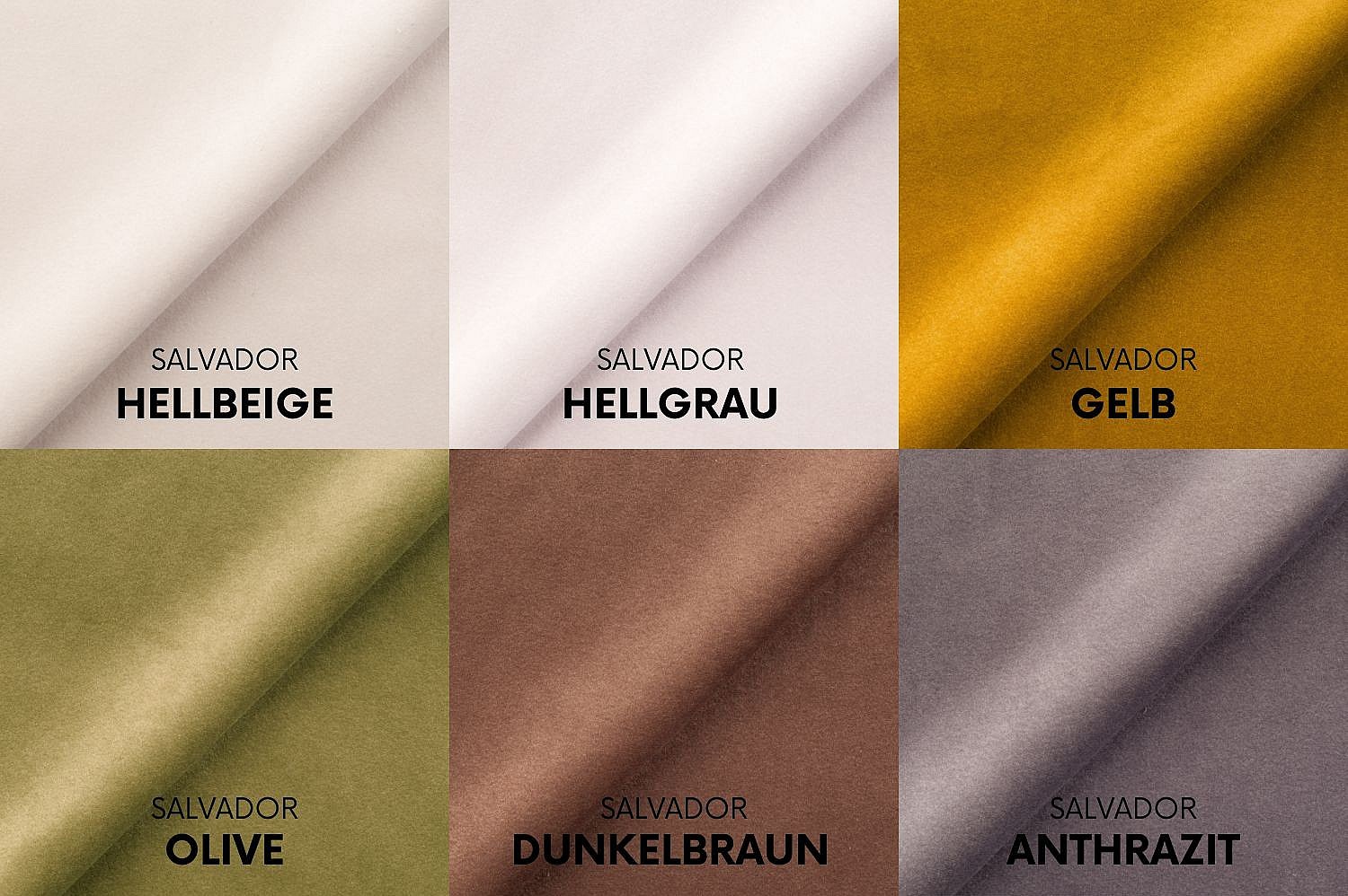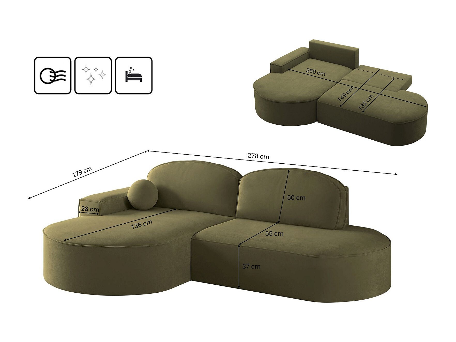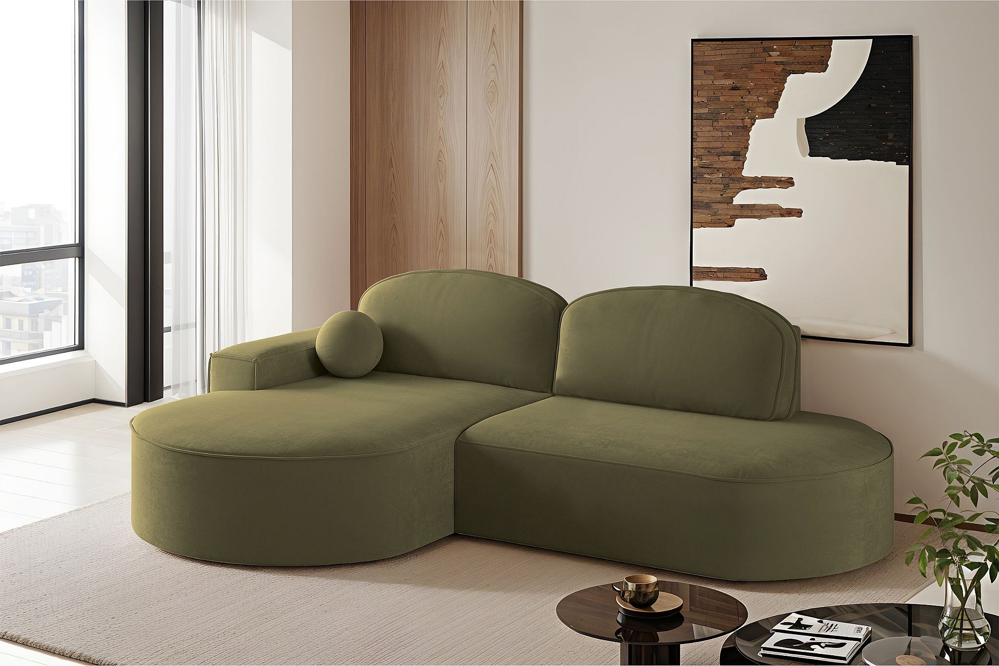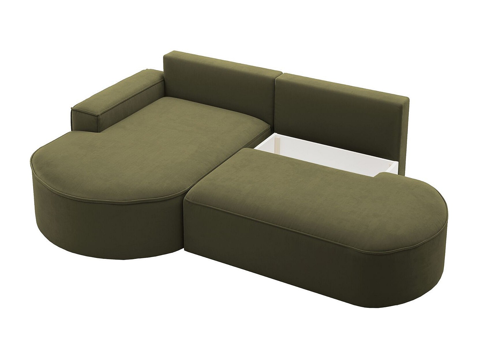 Ecksofa mit Schlaffunktion und Bettkasten Modena Runden stoff Salvador Olive Links