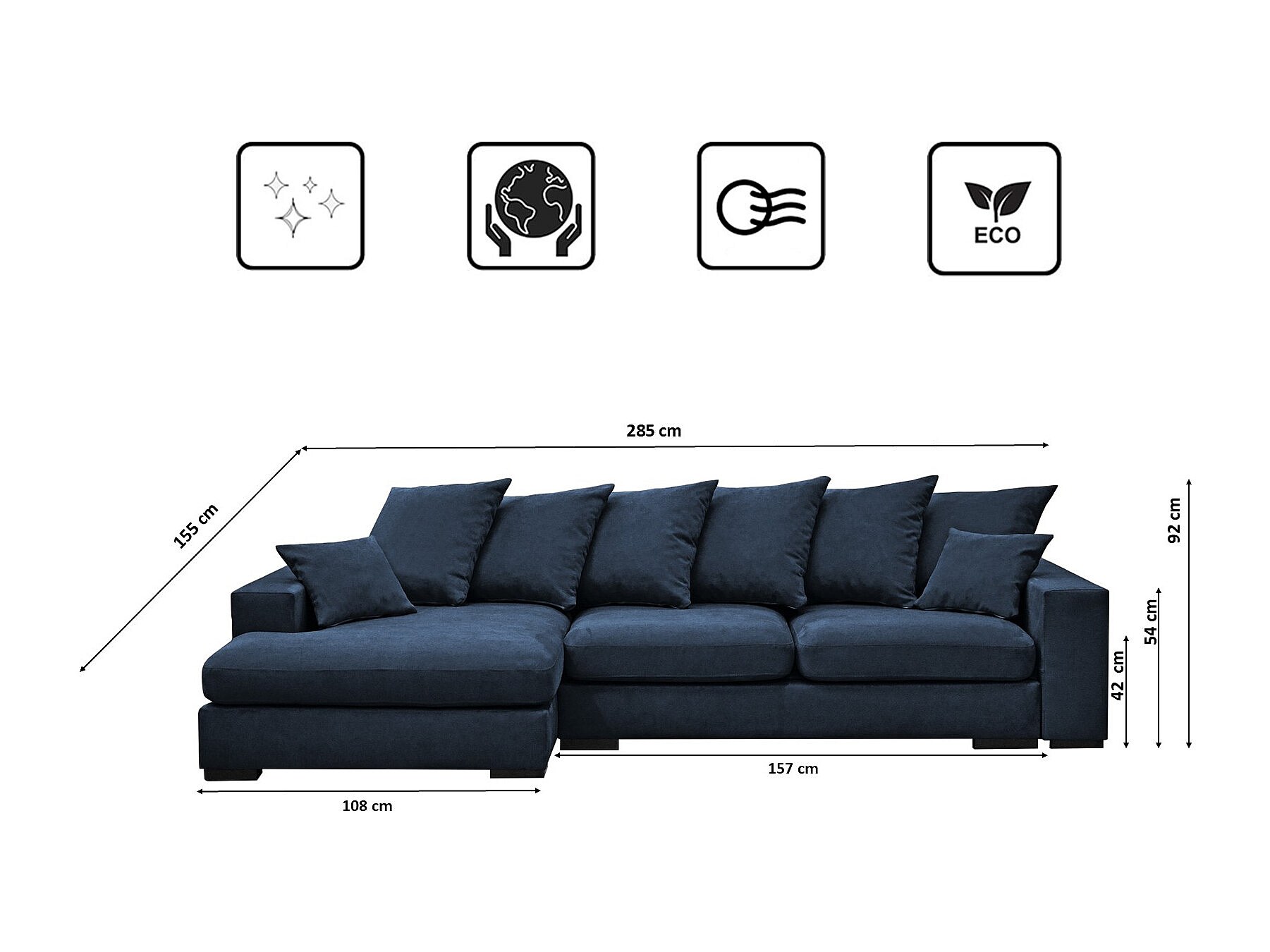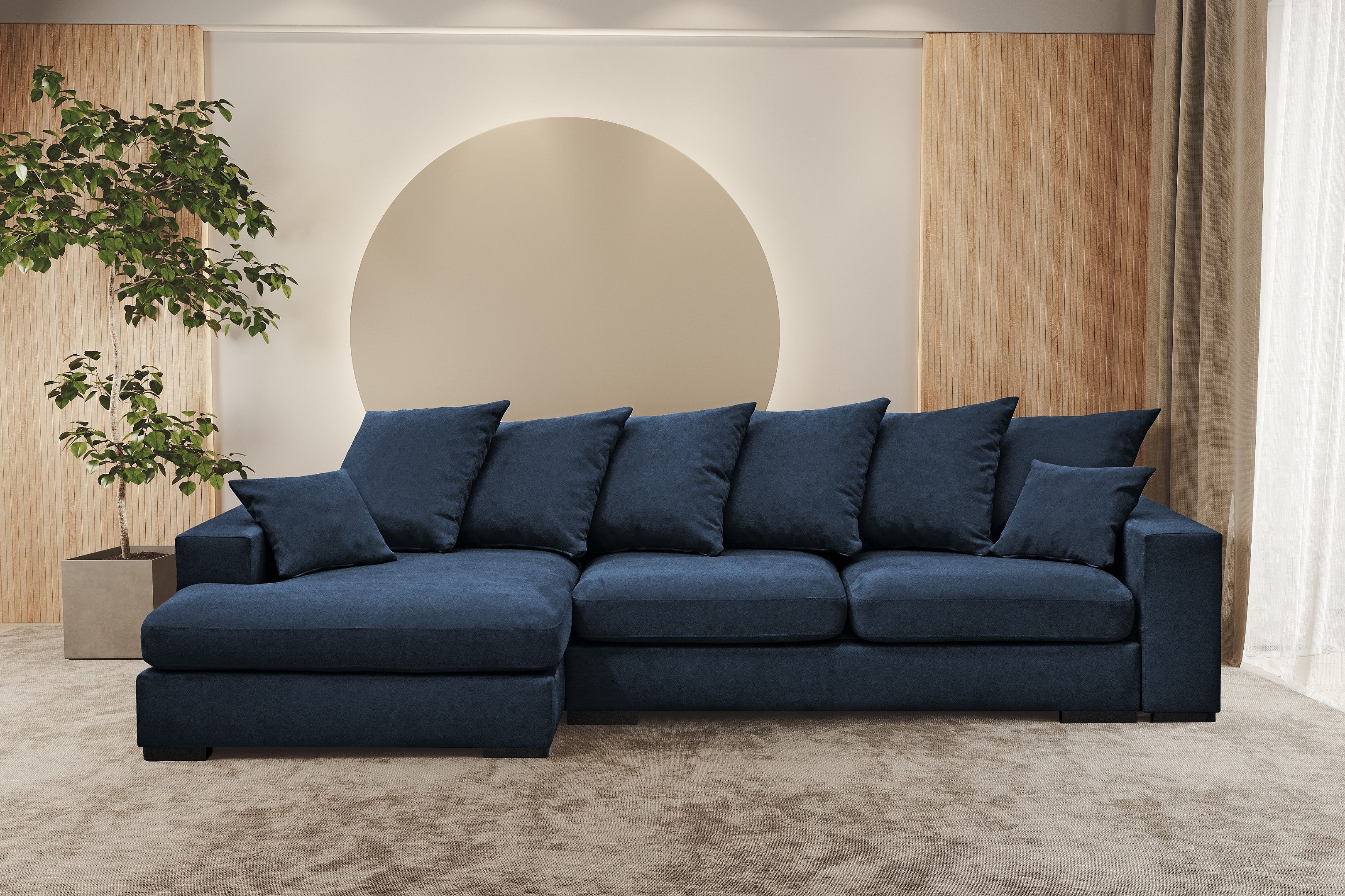 Ecksofa mit schlaffunktion und bettkasten, Sofa L-form, Couch L-form Gabon stoff Riviera Links Blau