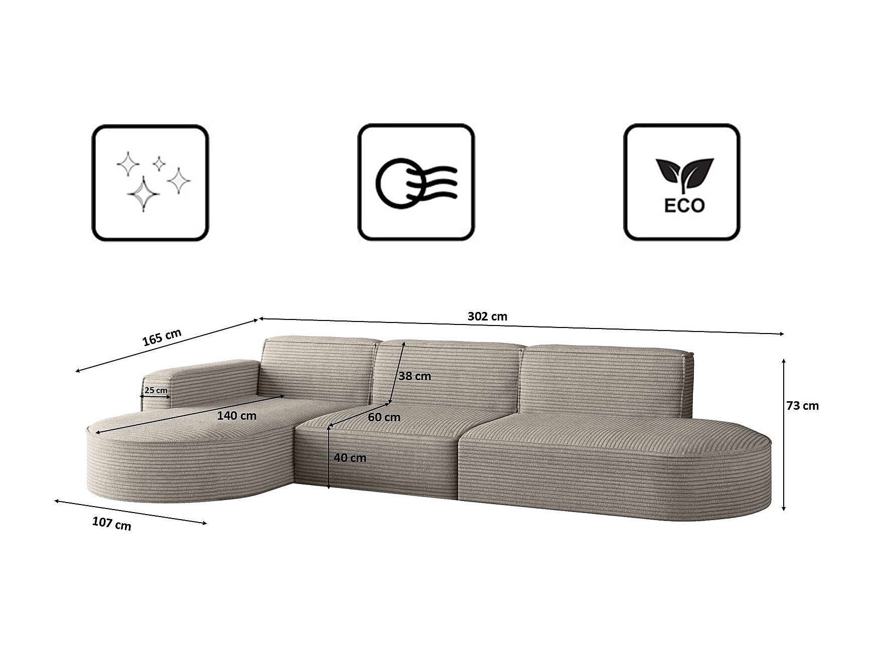 Ecksofa, Modena L-Form, Stoff Poso, Hellbraun, Links