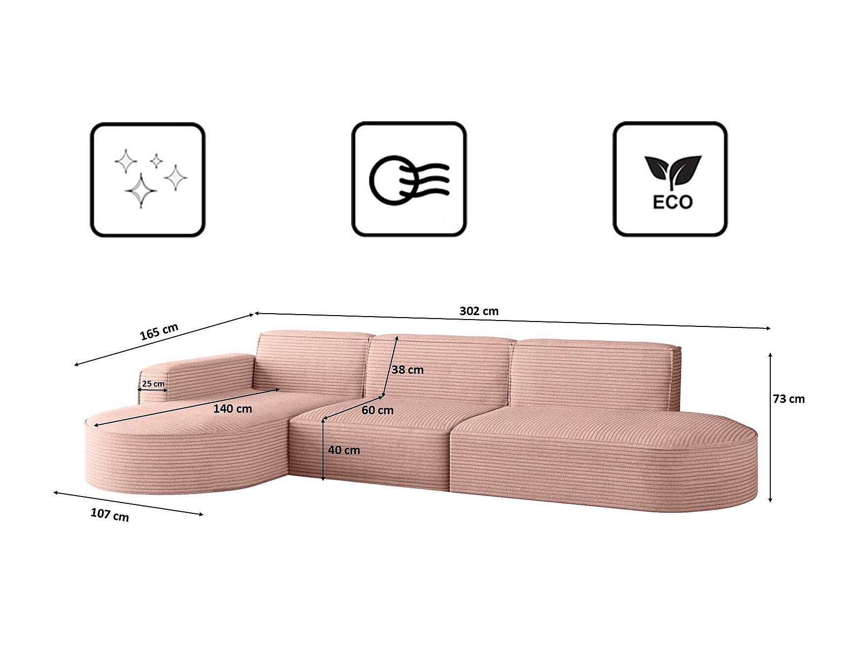 Ecksofa, Modena L-Form, Stoff Poso, Rosa, Links