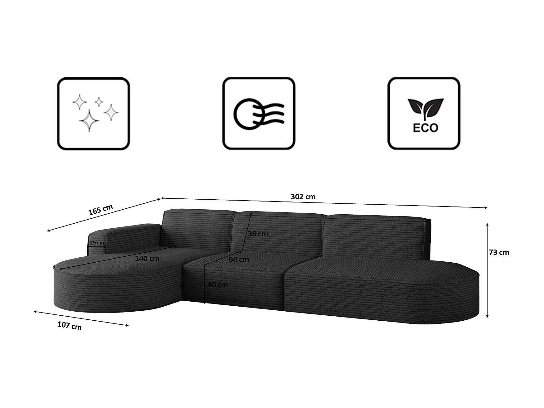 Ecksofa, Modena L-Form, Stoff Poso, Schwarz, Links