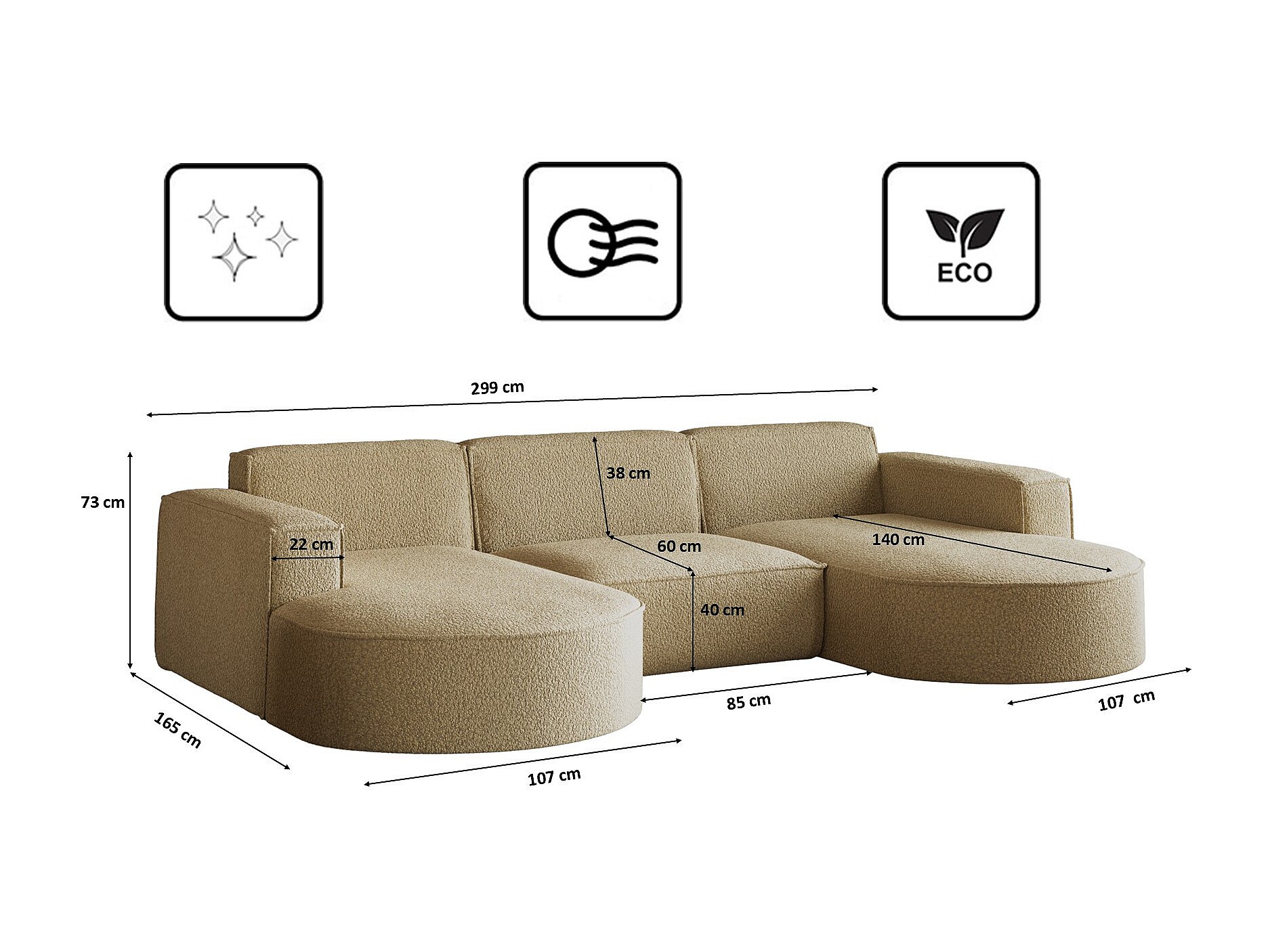 Ecksofa, Modena U-Form, Stoff Quelle, Hellbraun