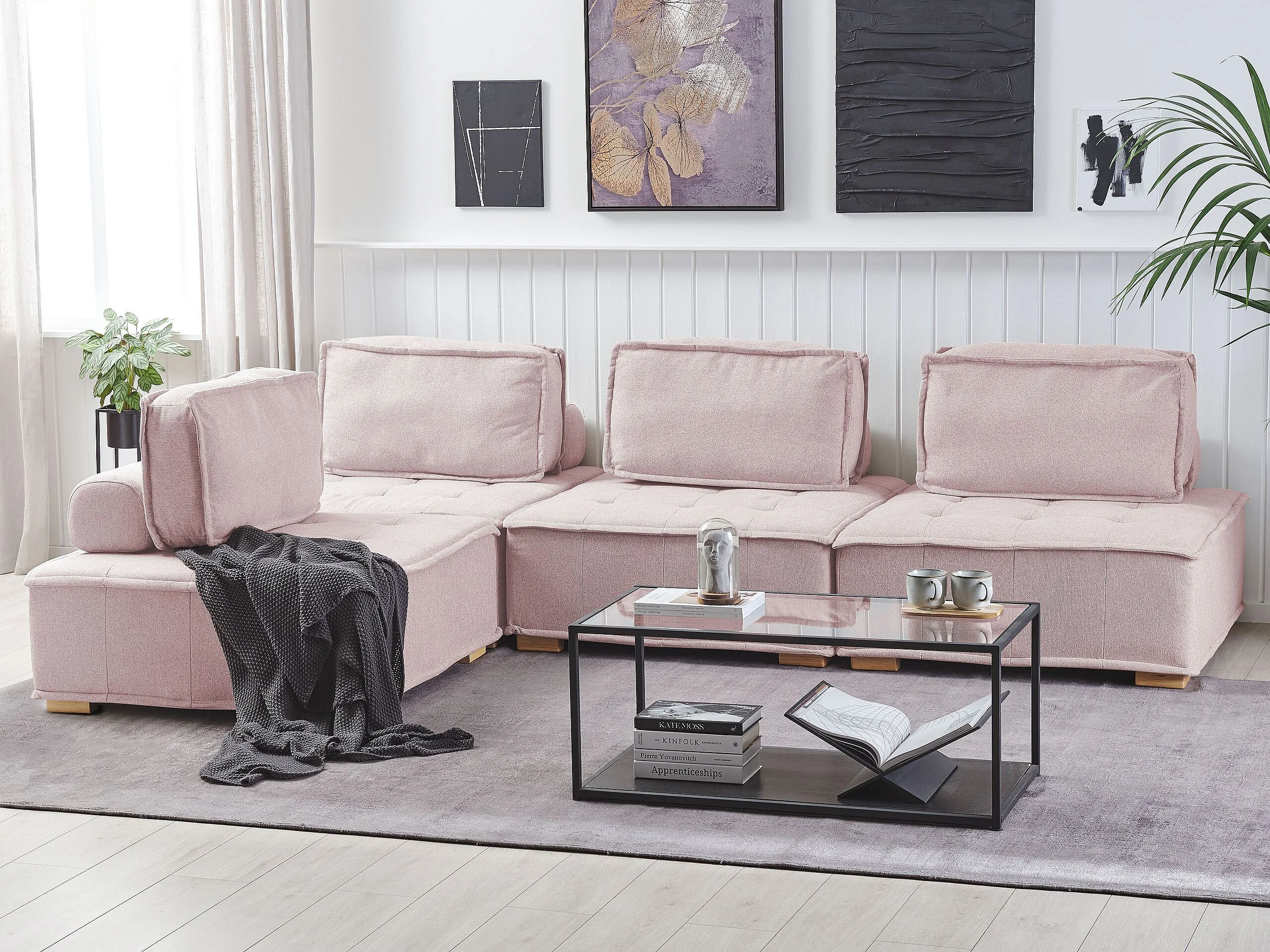 Modulares 4-Sitzer Ecksofa Polsterbezug rosa Wohnlandschaft L-Form Modern Tibro