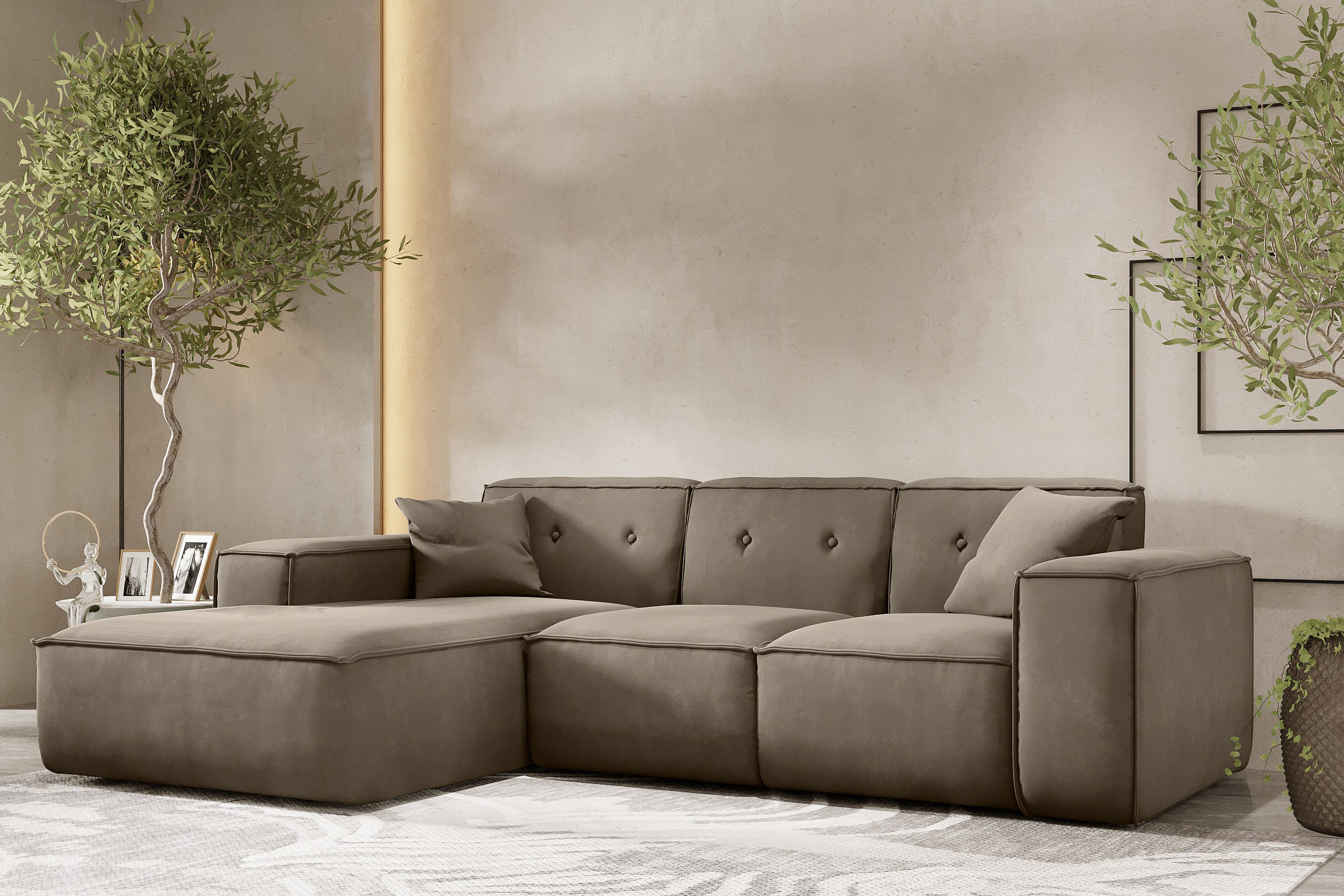 Ecksofa PULA L-Form, Stoff Opera Velvet, Braun, Links