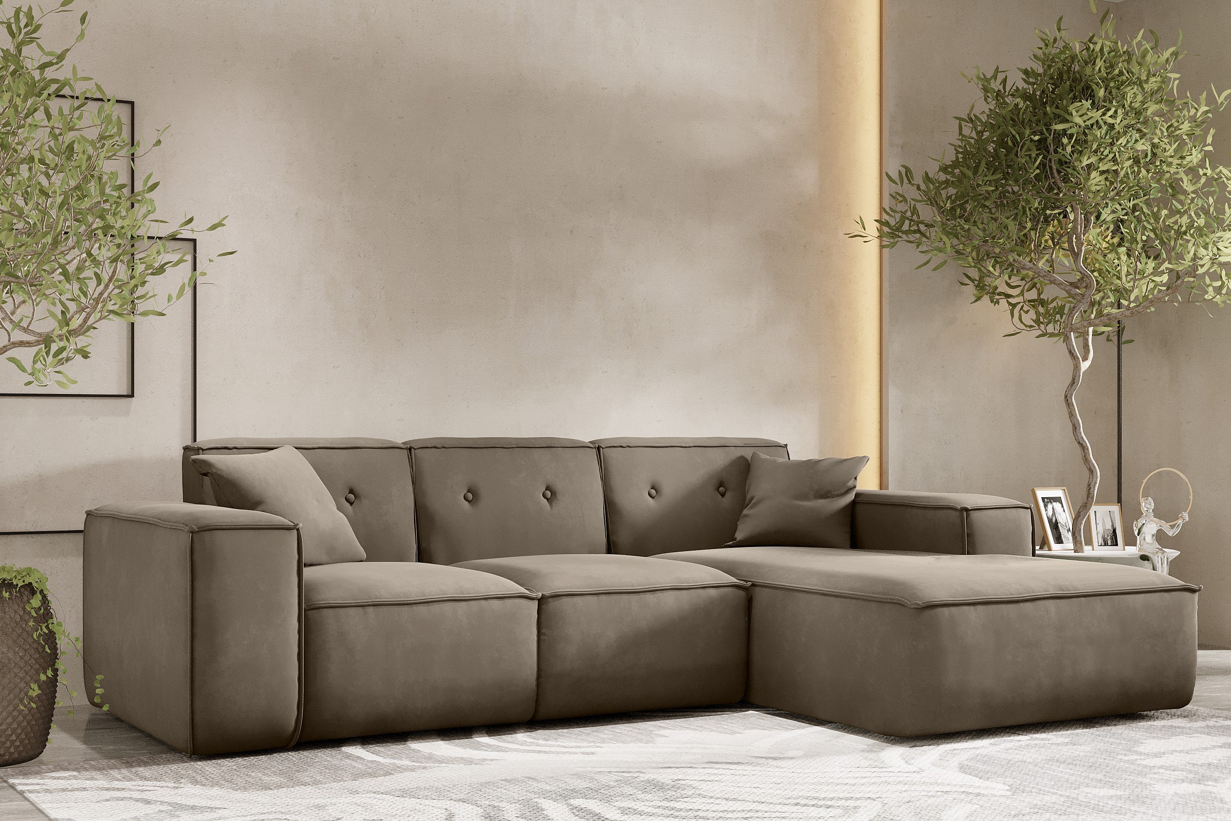 Ecksofa PULA L-Form, Stoff Opera Velvet, Braun, Rechts
