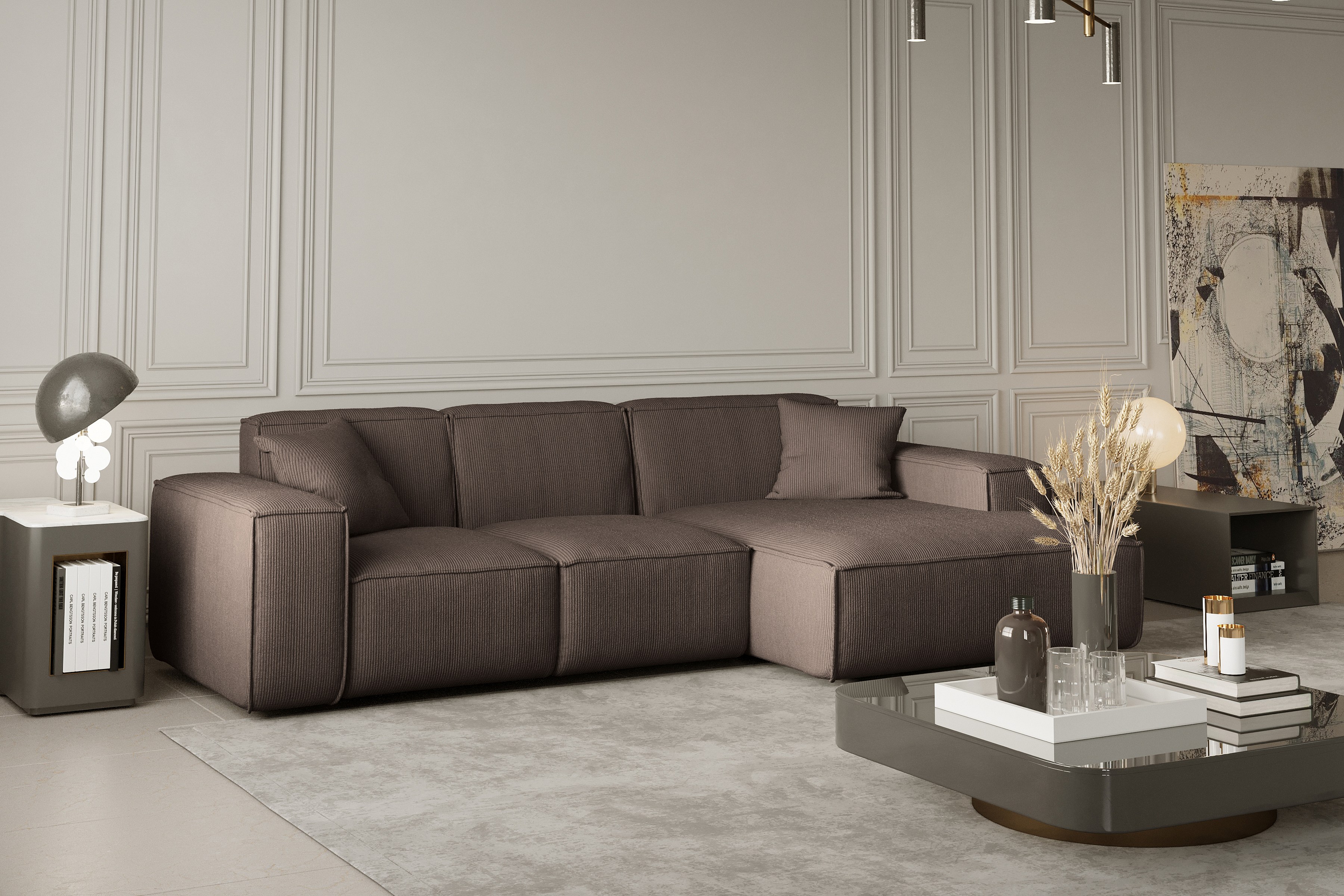 Ecksofa PULA L-Form, Stoff Scala, Braun, Rechts