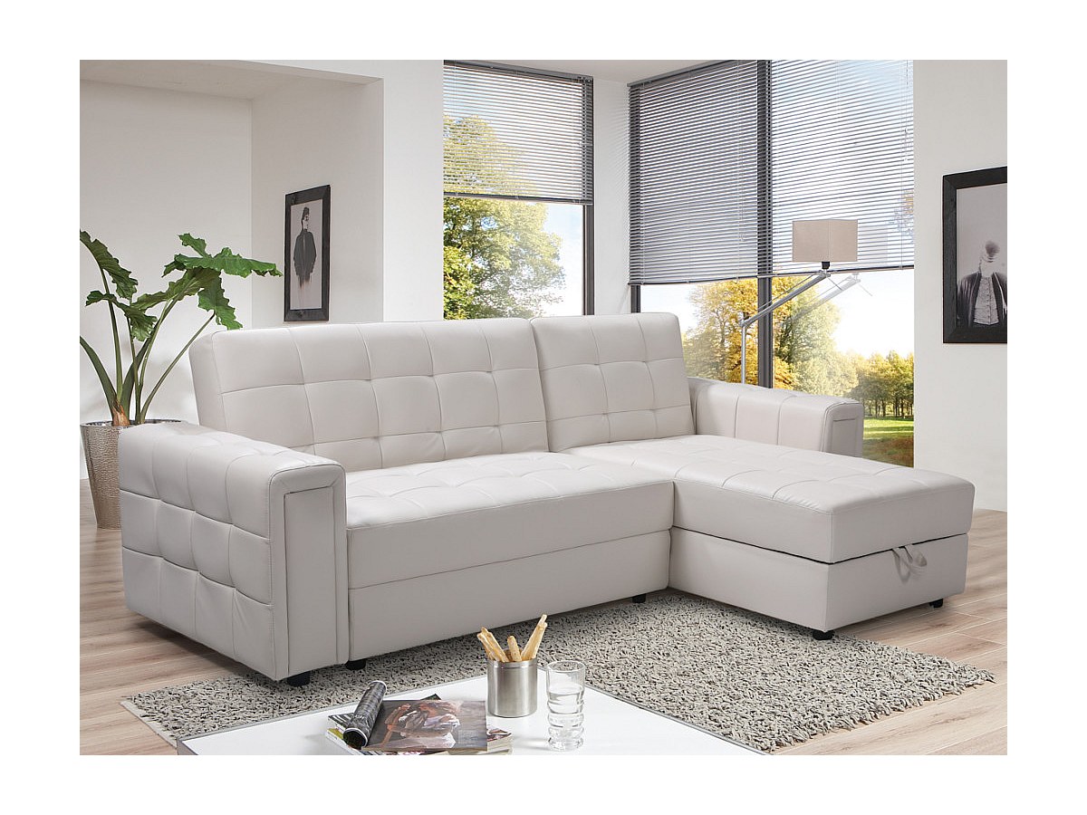 Ecksofa mit Schlaffunktion & Bettkasten ORIGAMI III - Weiß