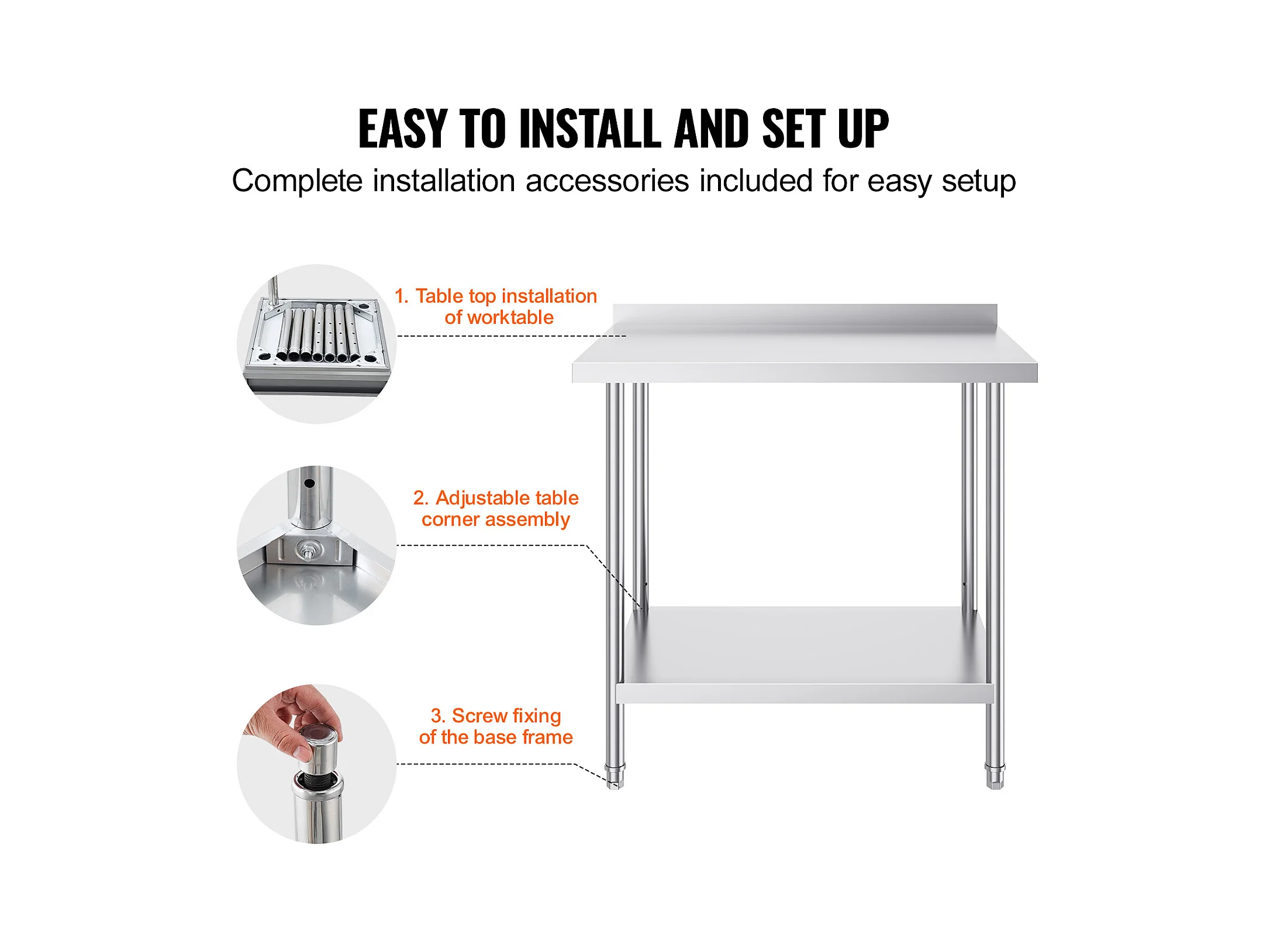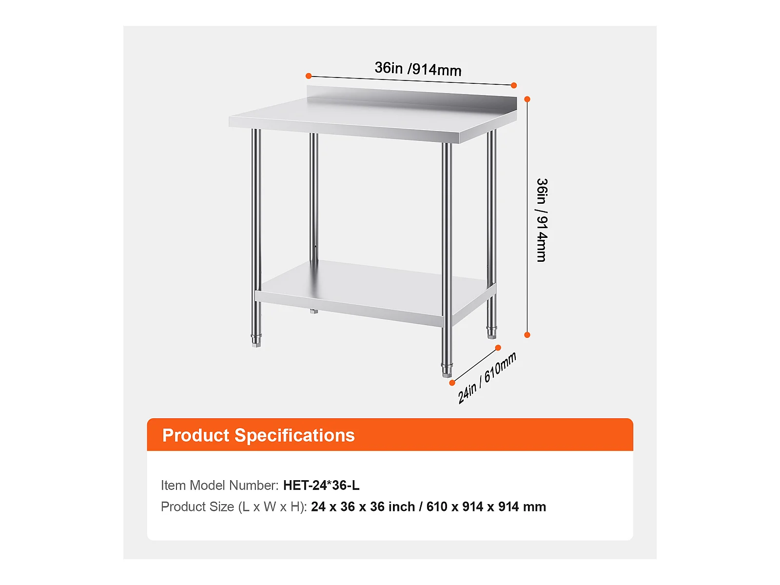 Edelstahl-Arbeitstisch SucceBuy, Lebensmittelzubereitungstisch für die Gewerbliche Küche, 91,4 x 61 cm