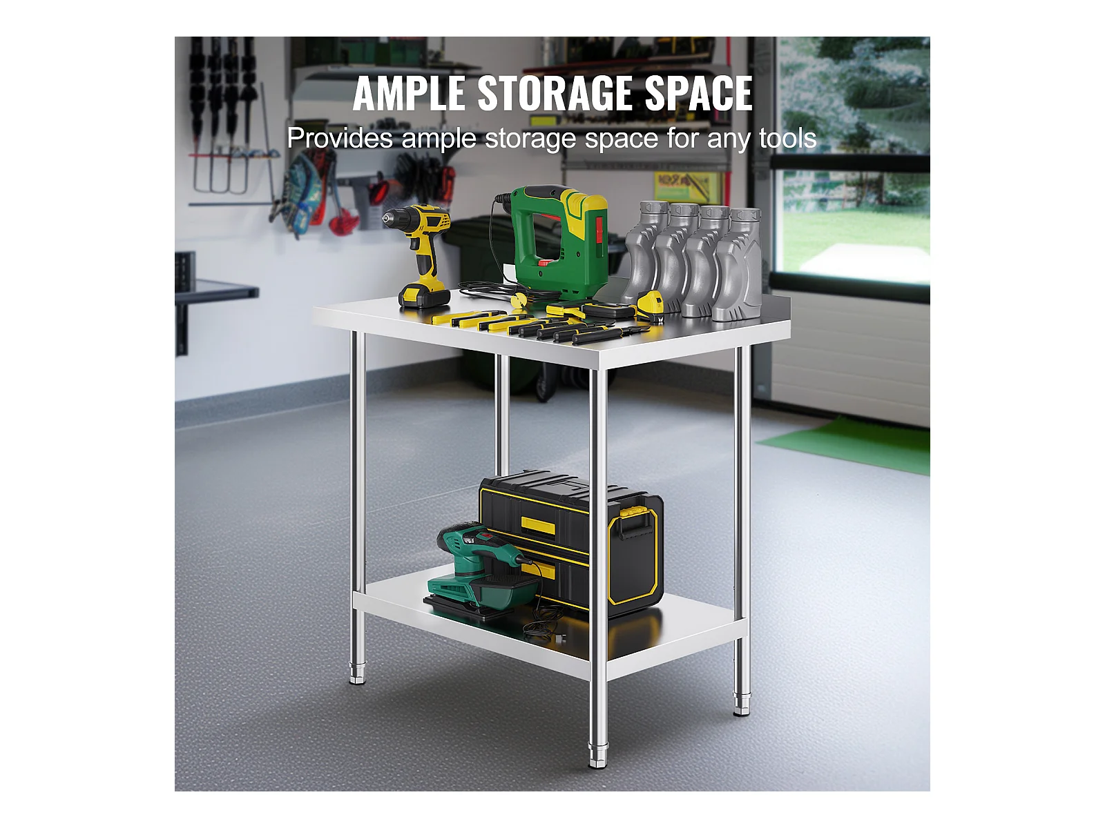 Arbeitstisch aus Edelstahl 60x76x80 cm, 2 Ebenen, für Küchenvorbereitung von Lebensmitteln und Mahlzeiten, Hotels, Büros, Krankenhäuser