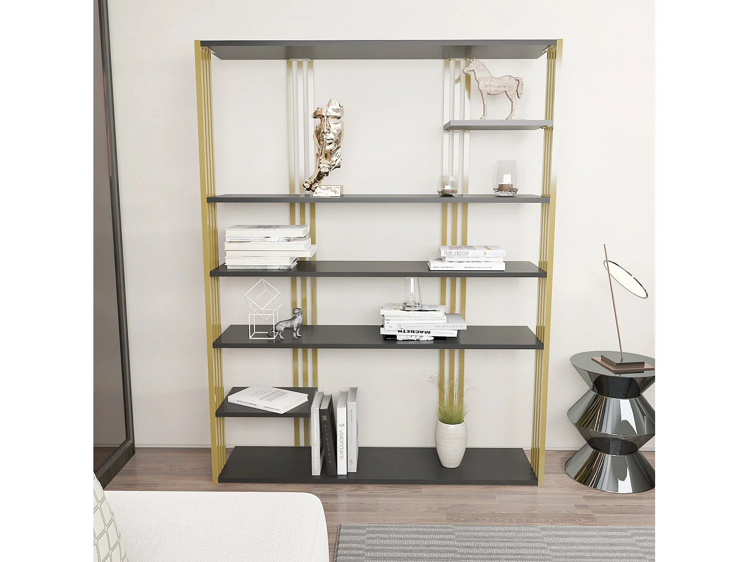 Edles Regal in Anthrazit und Gold, 120 x 160 x 29,6 cm | 100 % melaminbeschichtete Spanplatte, 18 mm stark | Moderne Aufbewahrungslösung für