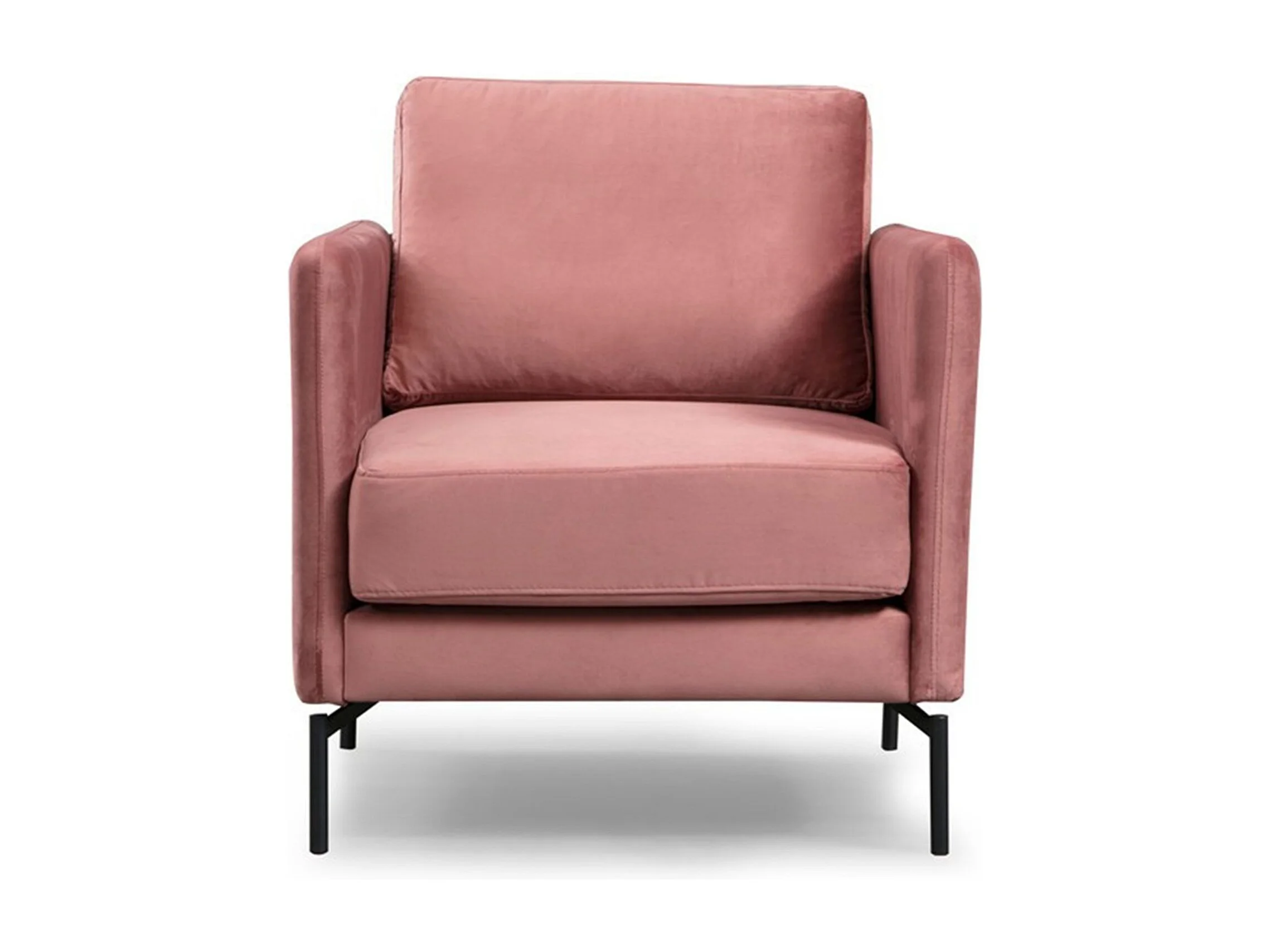 Eleganter rosa Sessel, Rahmen aus Buchenholz und Spanplatte, 81 x 87 x 90 cm | 100 % weicher Polyesterstoff, mattschwarze Metallbeine | Perf