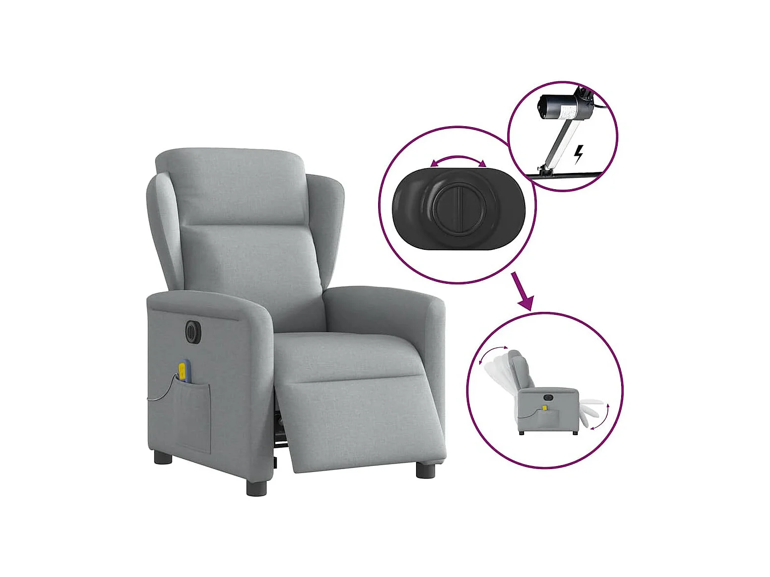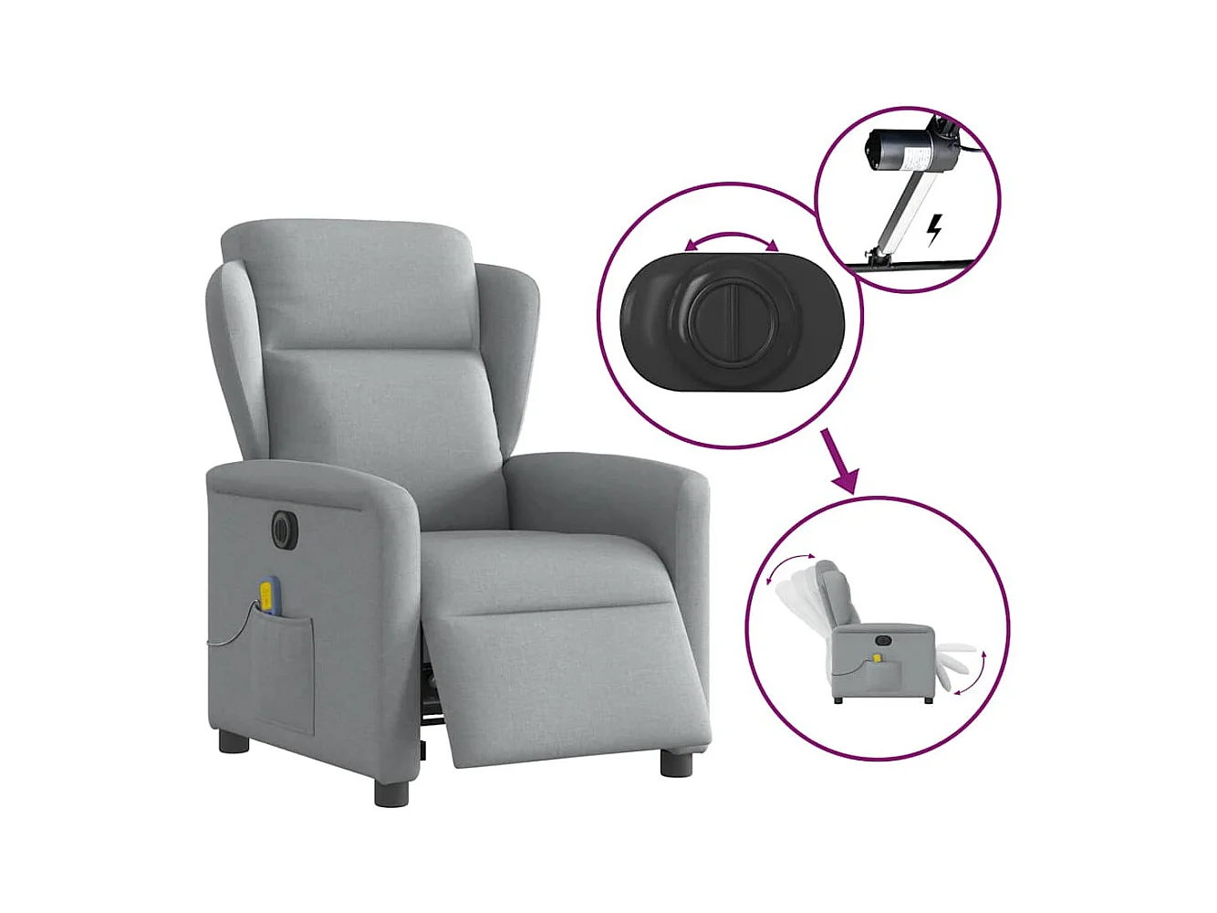 Elektrischer verstellbarer Massagesessel, Stoff in Wolkengrau