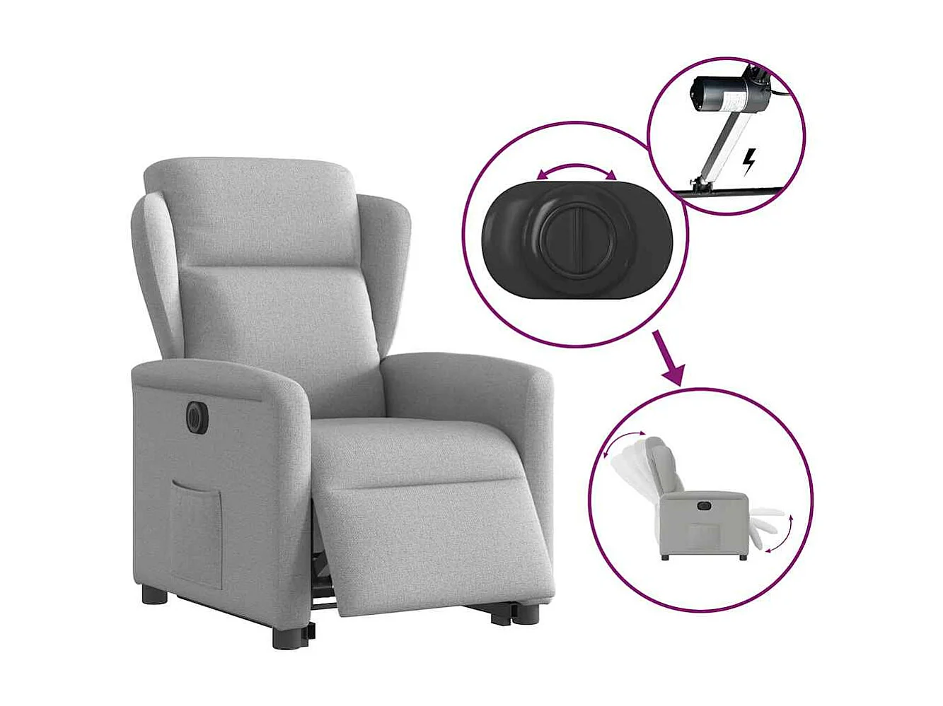 Elektrischer Ruhesessel aus wolkengrauem Stoff