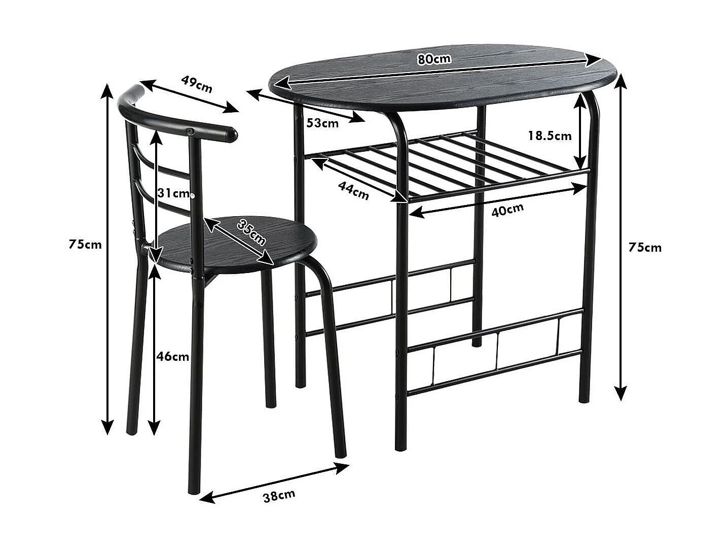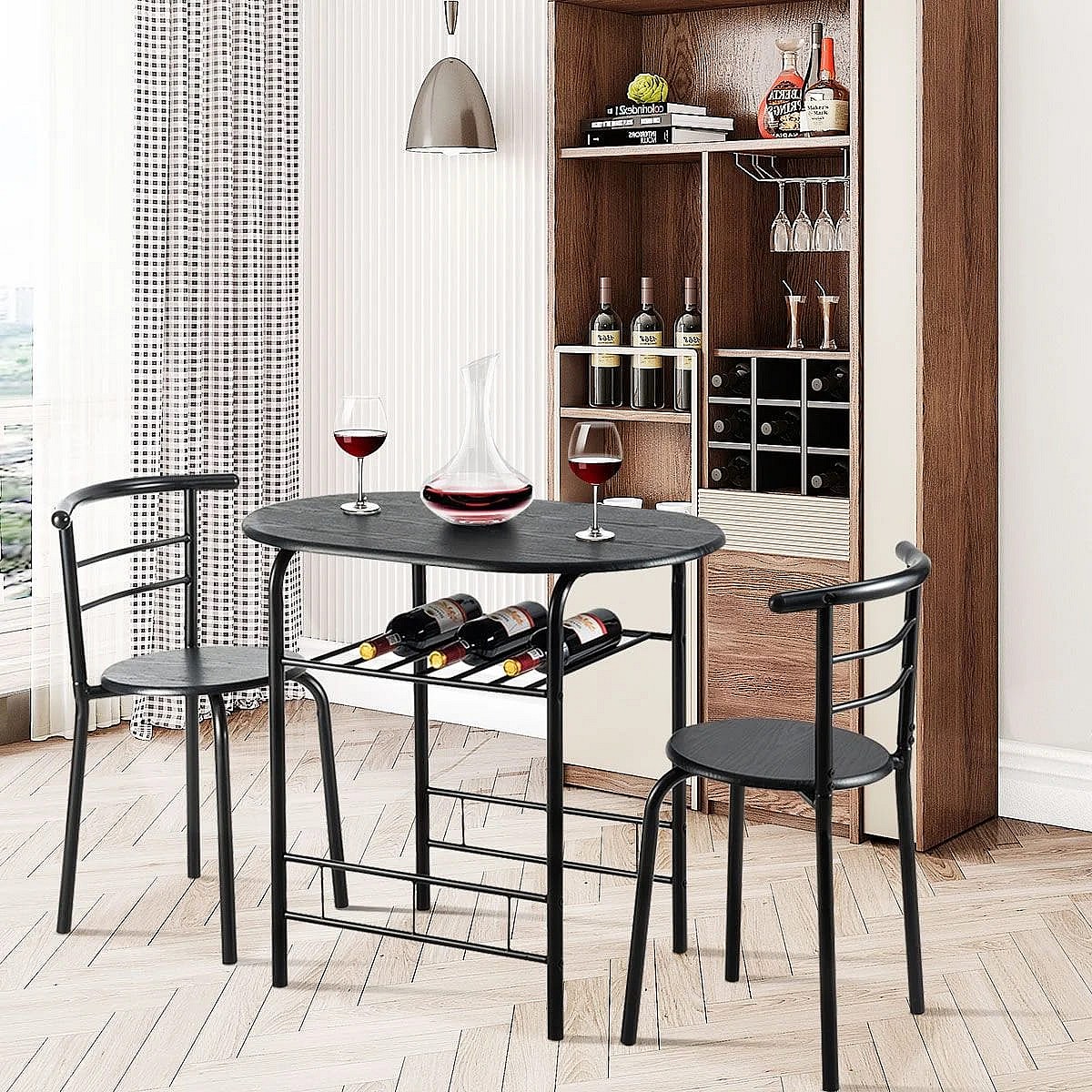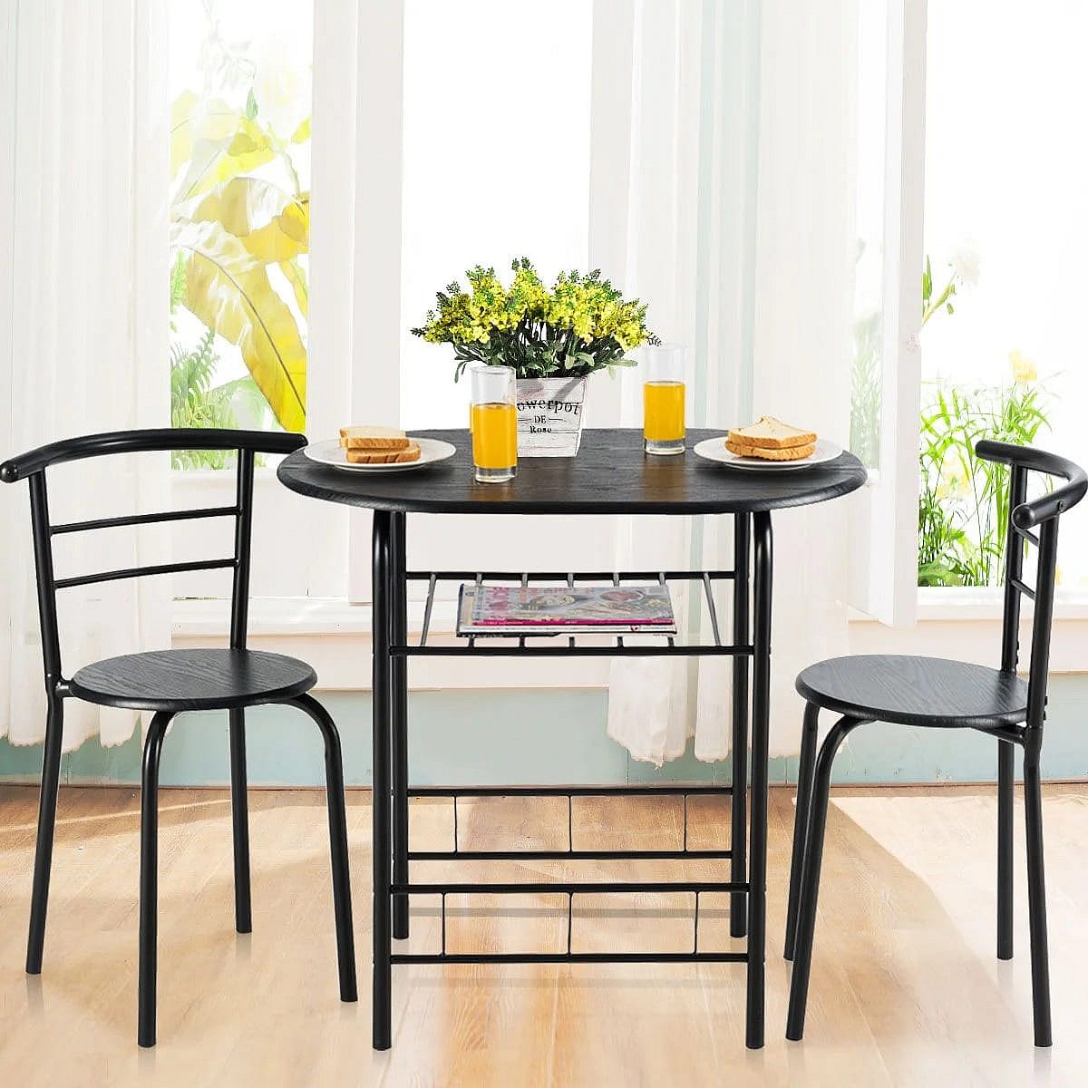 3 tlg. Essgruppe Esstisch mit 2 Stühlen Esszimmergruppe Platzsparende Sitzgruppe Schwarz